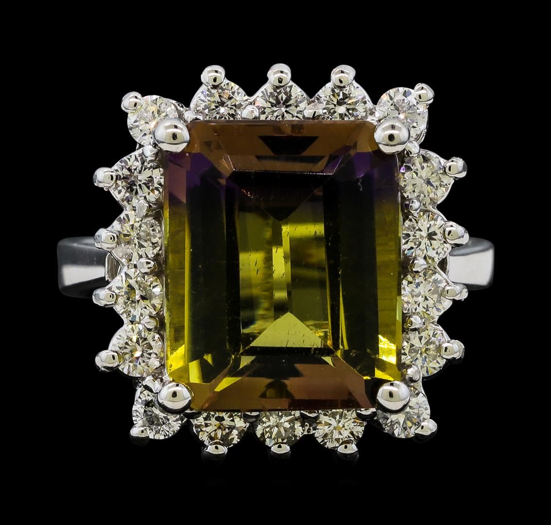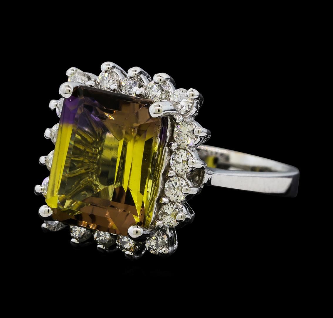 One Ametrine Quartz and Diamond Ring including: 14KT White Gold weighing a total of 5.50 grams, Ametrine Quartz weighing a total of 4.62ct and 18 Diamonds weighing a total of 0.65ctw.
