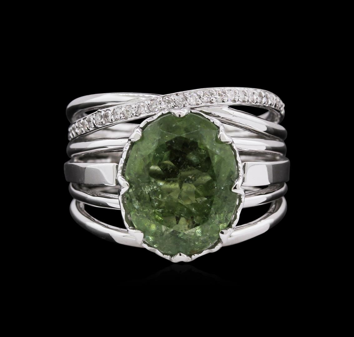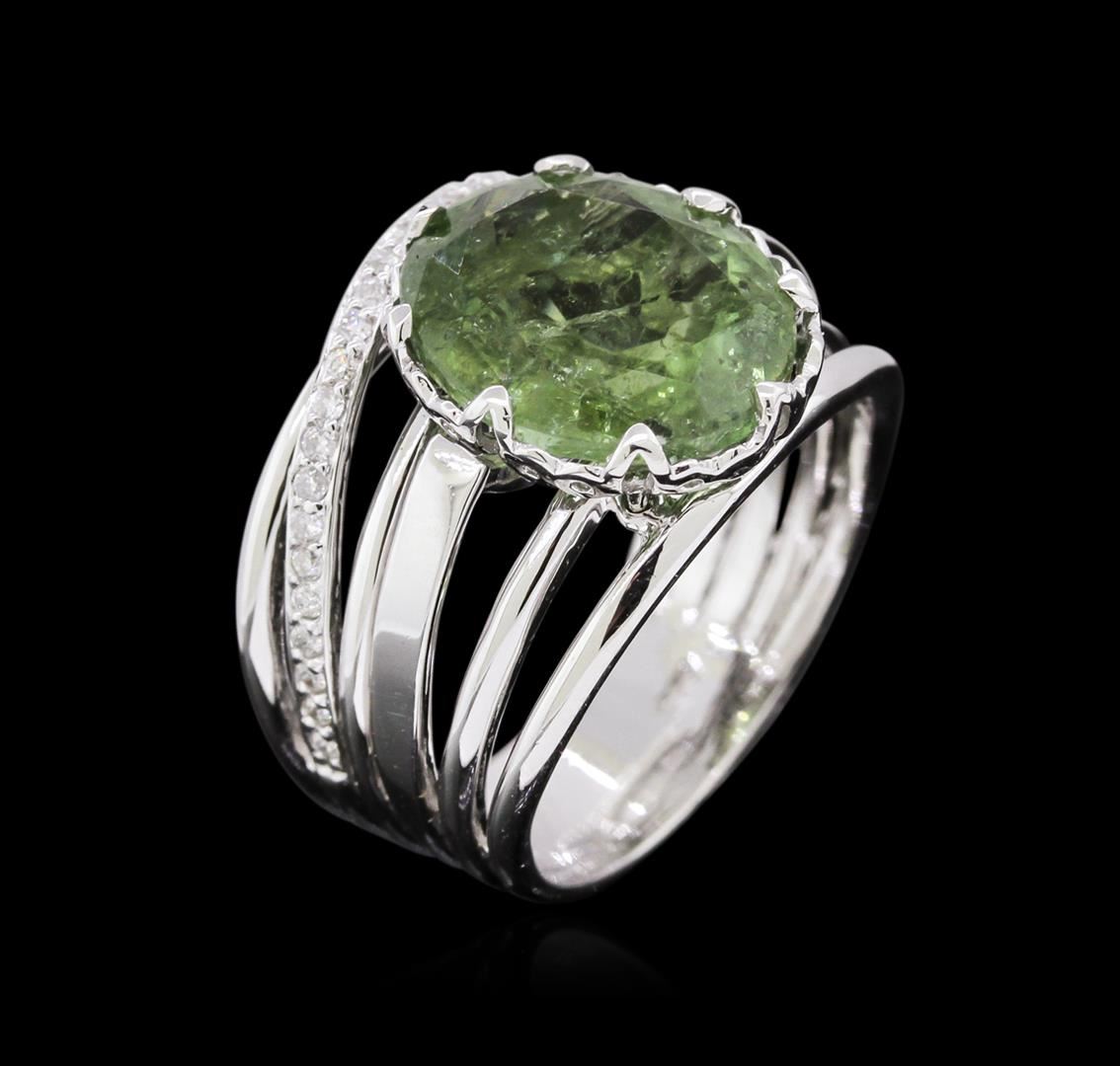 One ring featuring: 14KT white gold weighing 6.53 grams containing one green tourmaline with a total weight of 4.70ct and diamonds with a total weight of 0.15.