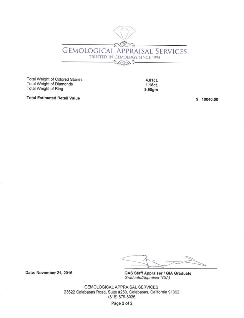 Regarding Appraised Jewelry and Loose Stones – COME TO THE AUCTIONS sends them out to a third party for Retail Replacement Value Appraisals, which are the most common. These types of evaluations are written for insurance needs. This would be the cost to replace the jewelry with an item of equal quality and kind, considered to be the current market price or the replacement value. This type of appraisal is done to protect you in the event of damage or loss of a valuable item. Our appraisals are conducted by independent 3rd Party appraisal firms that utilizes Certified GIA Gemologist. Appraisals should be used for verification of gemstone and/or metal weight, size, and grade only, not actual value. Appraisal value should be considered for insurance purposes only, not actual value, as price varies greatly from retail locations throughout the world. Items should not be purchased with the expectation to resell for appraisal price, or for profit.