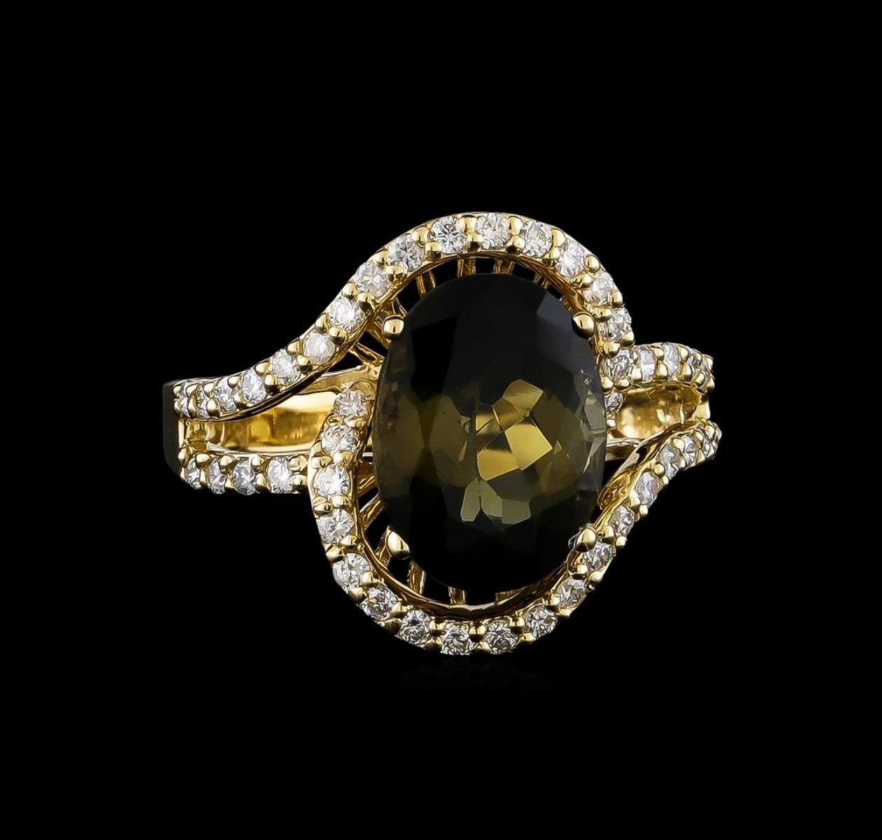 One ring featuring: 14KT yellow gold weighing 4.84 grams containing one tourmaline weighing 4.85ct and diamonds weighing 0.50ctw.