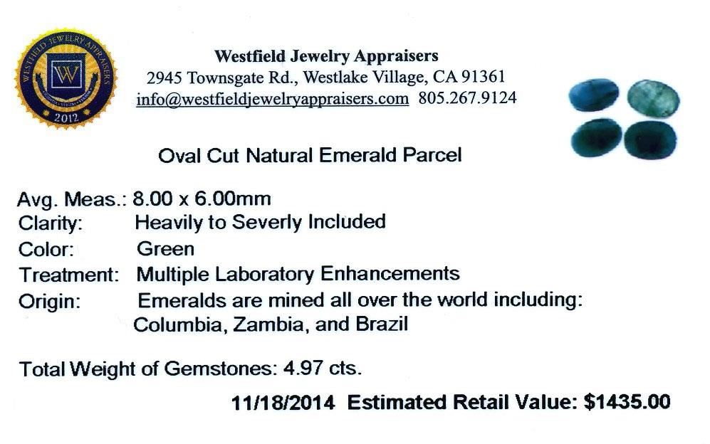 4.97cts. Oval Cut Natural Emerald Parcel Westfield Appraised.