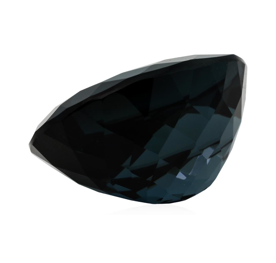One natural oval cut london blue topaz with an exact weight of 43.32ct., clarity is eye clean, greenish blue, dark. Gemological Appraisals Services estimates the retail value at $866.4 GAS Appraised.