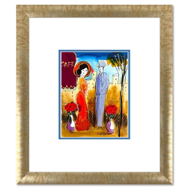 This is an original mixed media watercolor painting on paper by Moshe Leider. Hand signed by the artist, this piece comes custom framed and includes a Letter of Authenticity. Measures approximately 15" x 13.5" (frame), 8" x 6.5" (image).