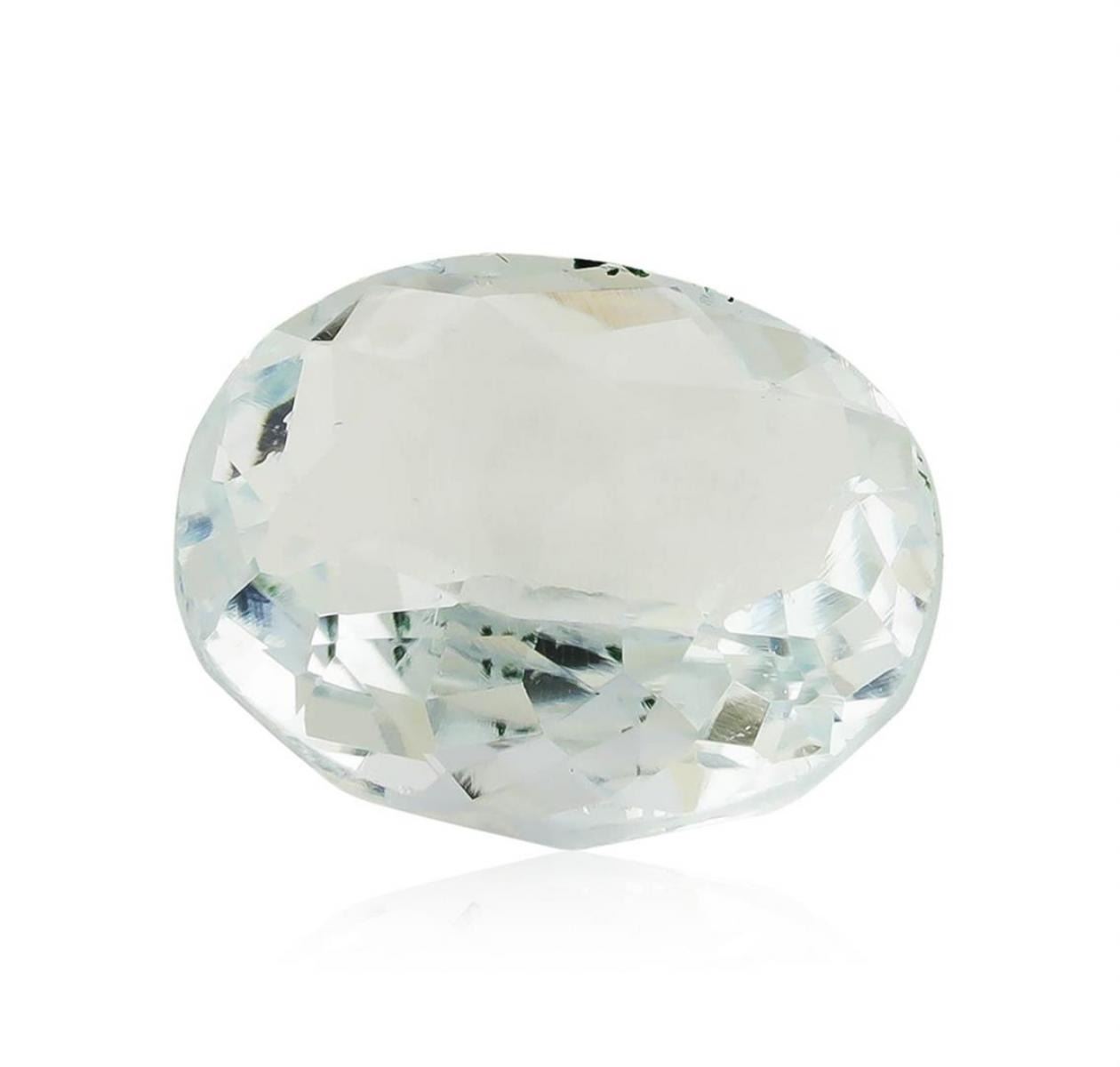One natural oval cut aquamarine with an exact weight of 5.07ct., clarity is eye clean, slightly grayish greenish blue. Gemological Appraisals Services estimates the retail value at $1926.6 GAS Appraised.