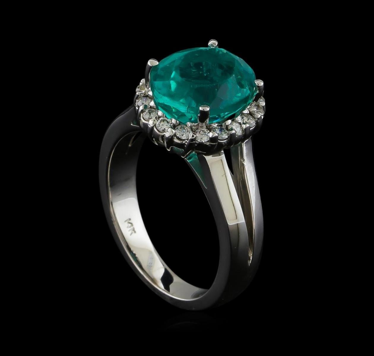 One Ring featuring: 14KT White Gold weighing 7.5 grams containing one Apatite center stone with a total weight of 5.12ct and Diamonds with a total weight of 0.33ct.