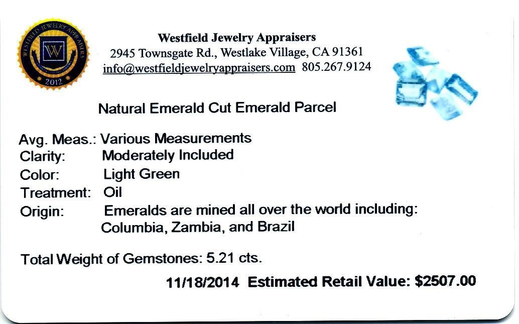 5.21cts. Natural Emerald Cut Emerald Parcel Westfield Appraised.