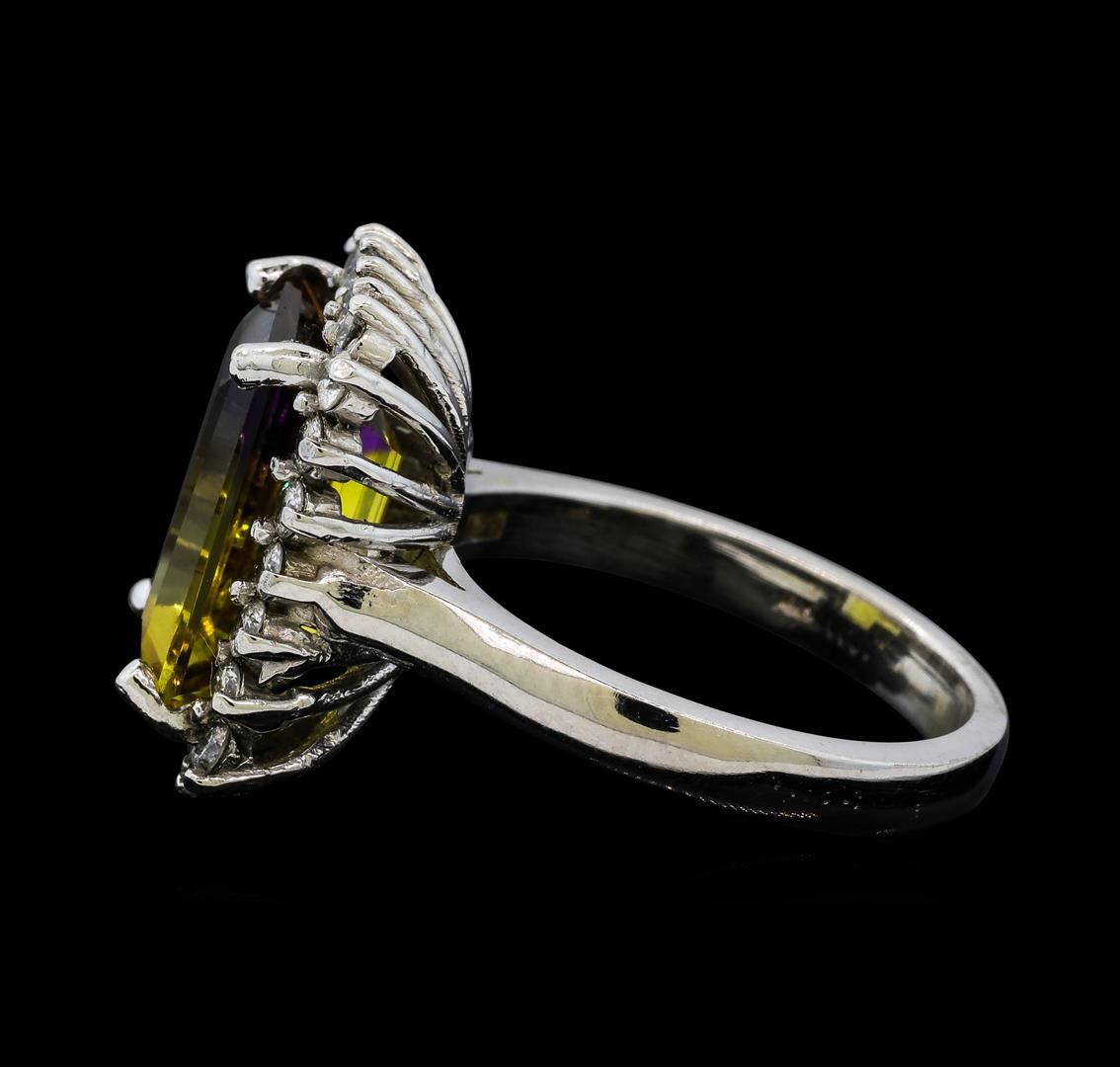 One Ametrine Quartz and Diamond Ring including: 14KT White Gold weighing a total of 6.03 grams, Ametrine Quartz weighing a total of 5.54ct and 24 Diamonds weighing a total of 0.58ctw.
