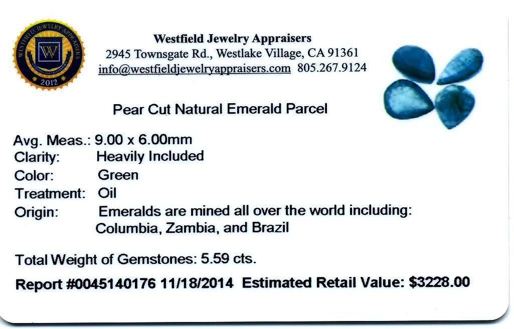 One 5.59 ctw Pear Cut Natural Emerald Parcel.