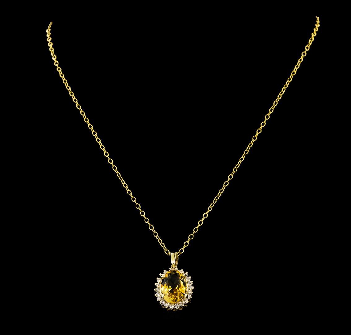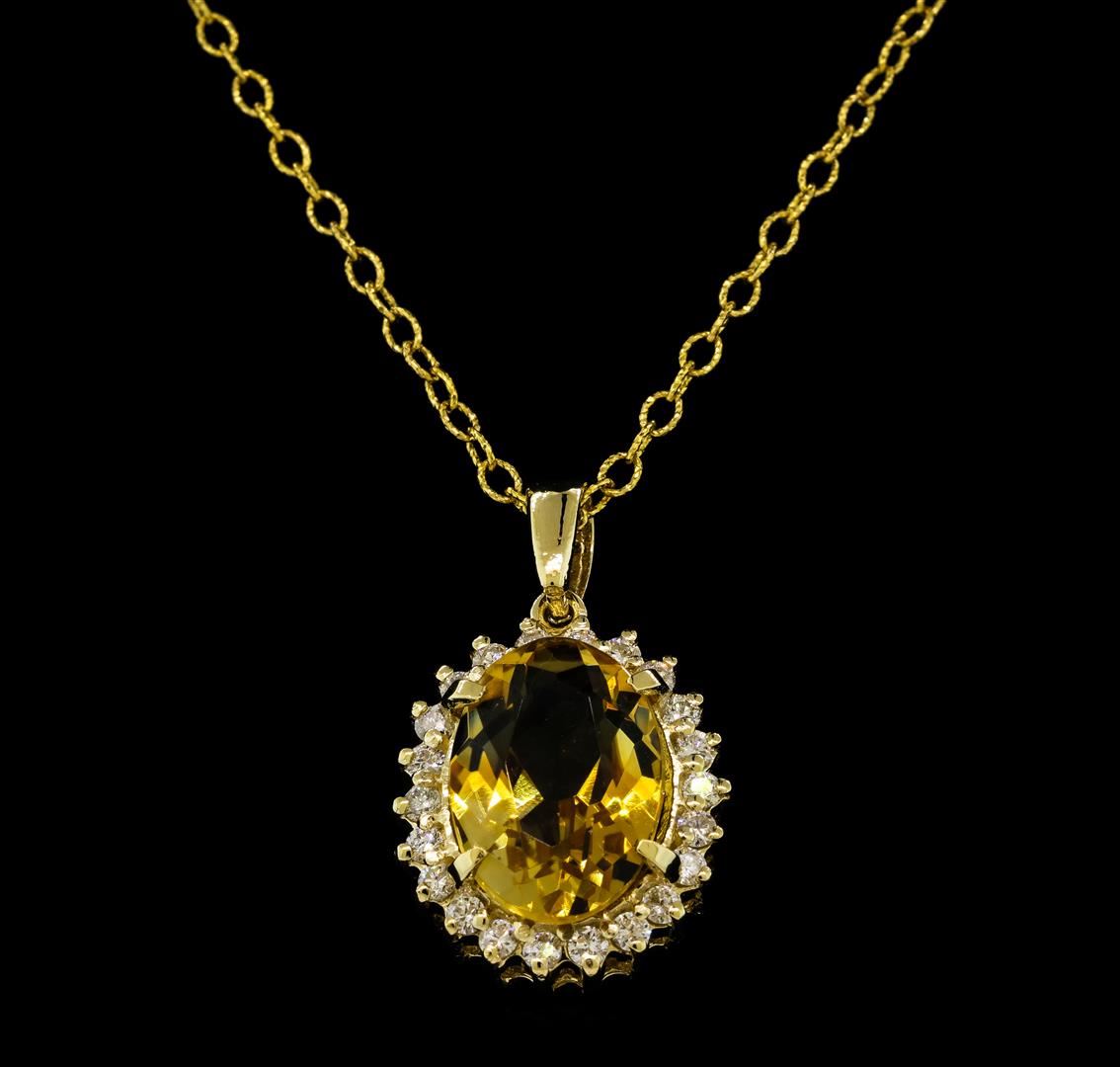 One Citrine Quartz and Diamond Pendant with Chain including: 14KT Yellow Gold weighing a total of 3.78 grams, Citrine Quartz weighing a total of 5.65ct and 22 Diamonds weighing a total of 0.54ctw.