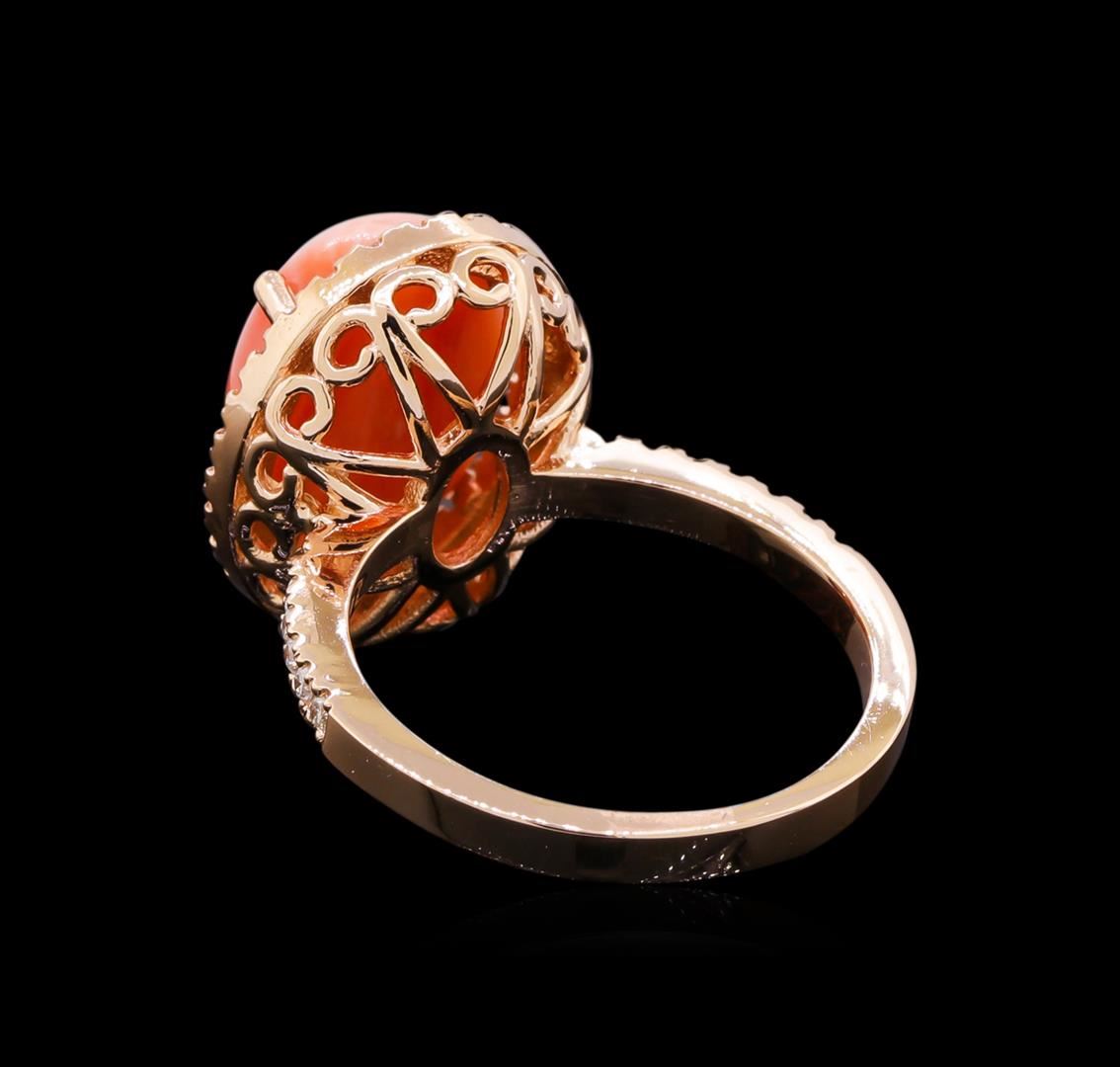 One ring featuring: 14KT rose gold weighing 4.98 grams containing one coral weighing 5.66ct and diamonds weighing 0.40ctw.