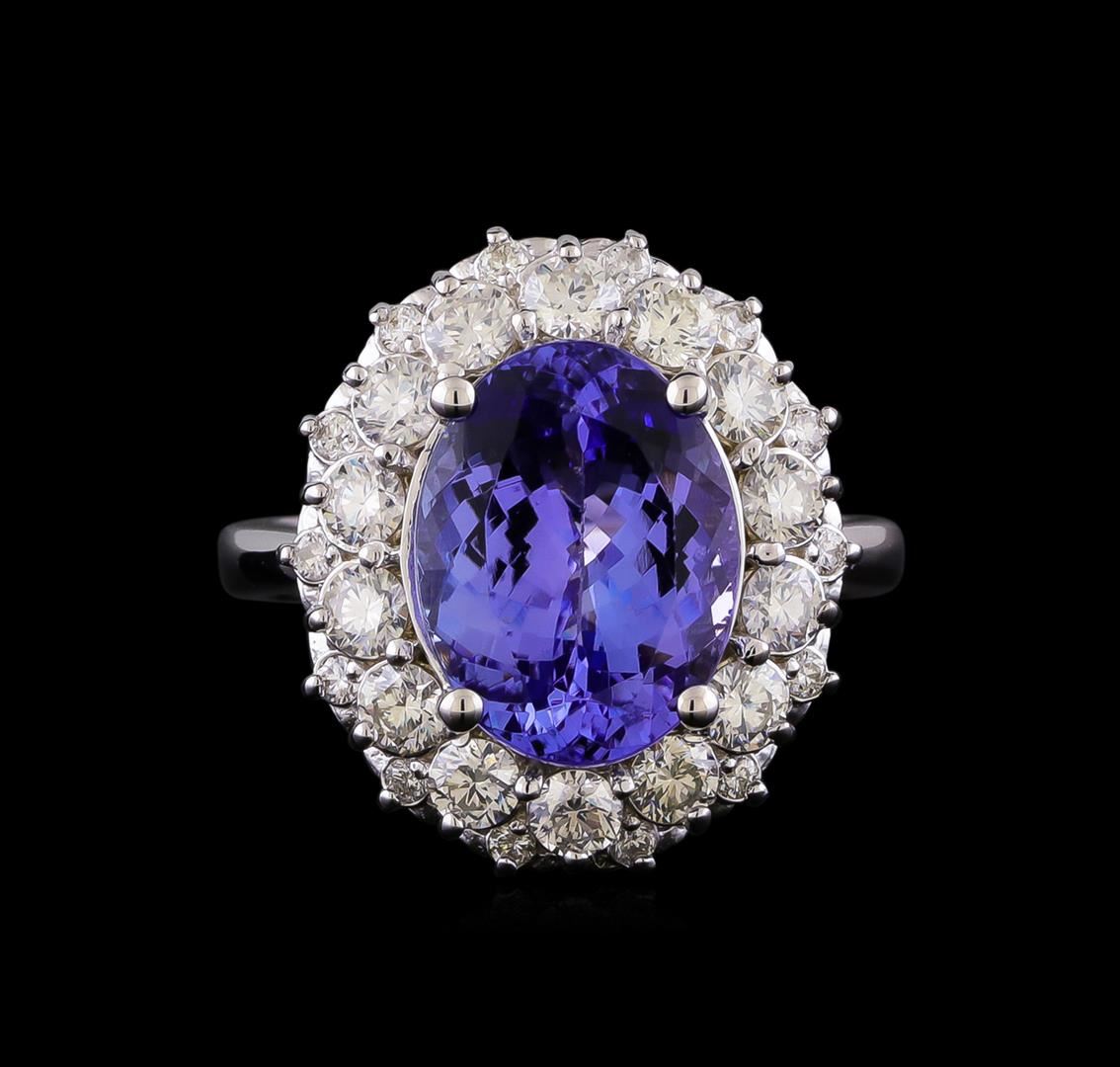 5.70 ctw Tanzanite and Diamond Ring - 14KT White Gold
