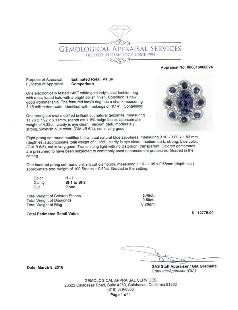 One electronically tested 14KT white gold lady's cast fashion ring with a scalloped halo with a bright polish finish. The featured lady's ring has a shank measuring 3.15 millimeters wide. Identified with markings of 'K14'. Condition is new, good workmansh GAS Appraised.
