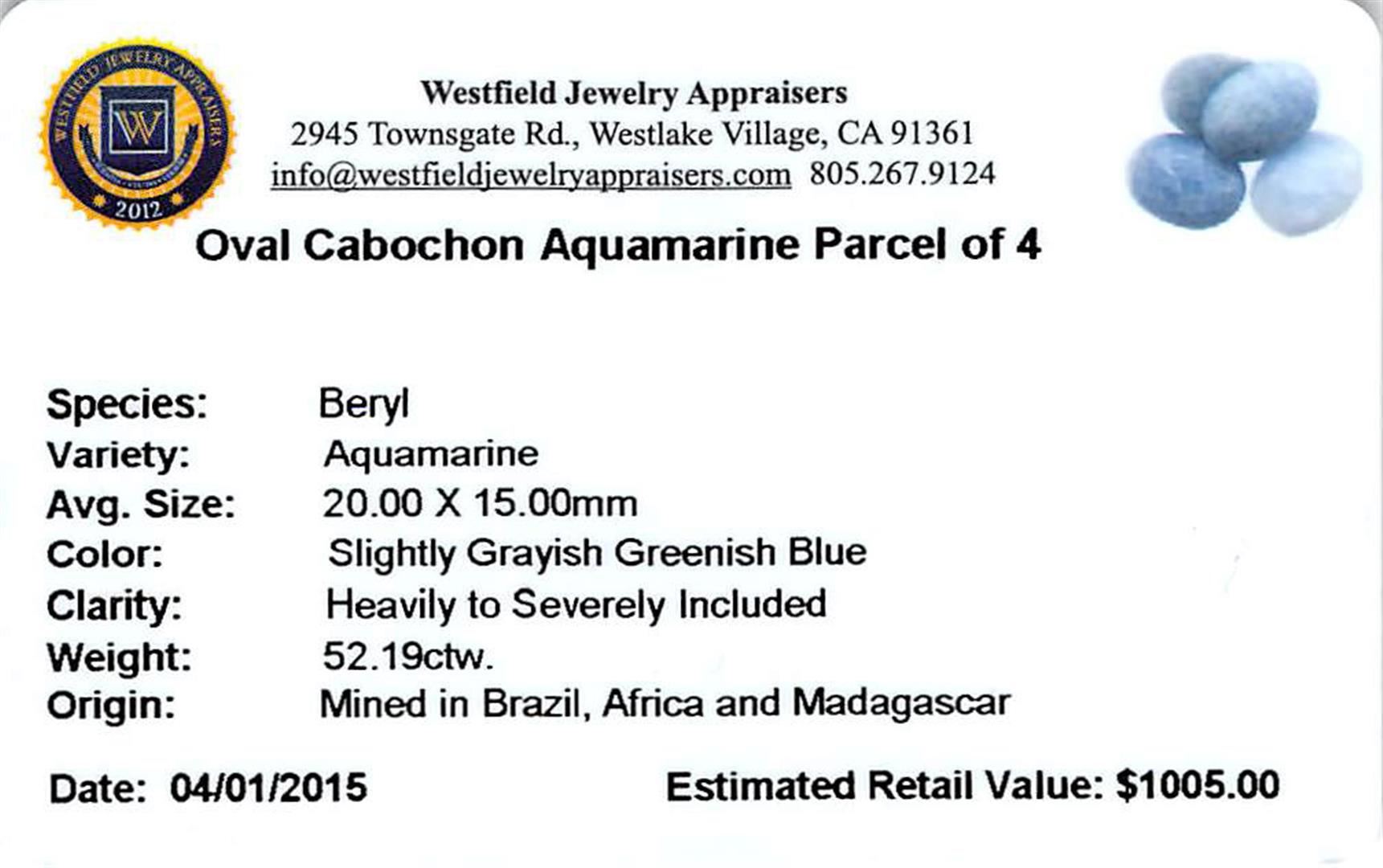 One 52.19ctw Oval Cabochon Aquamarine Parcel.