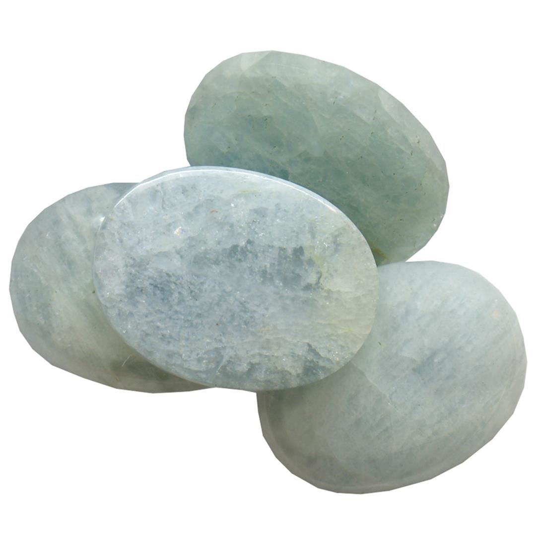 Four oval cabochon cut natural aquamarines exact total weight 52.21ct., clarity is heavily included, type I, medium, slightly grayish, very slightly greenish blue color, (GIA vslgB 5/2), cut is good. Westfield Appraised.