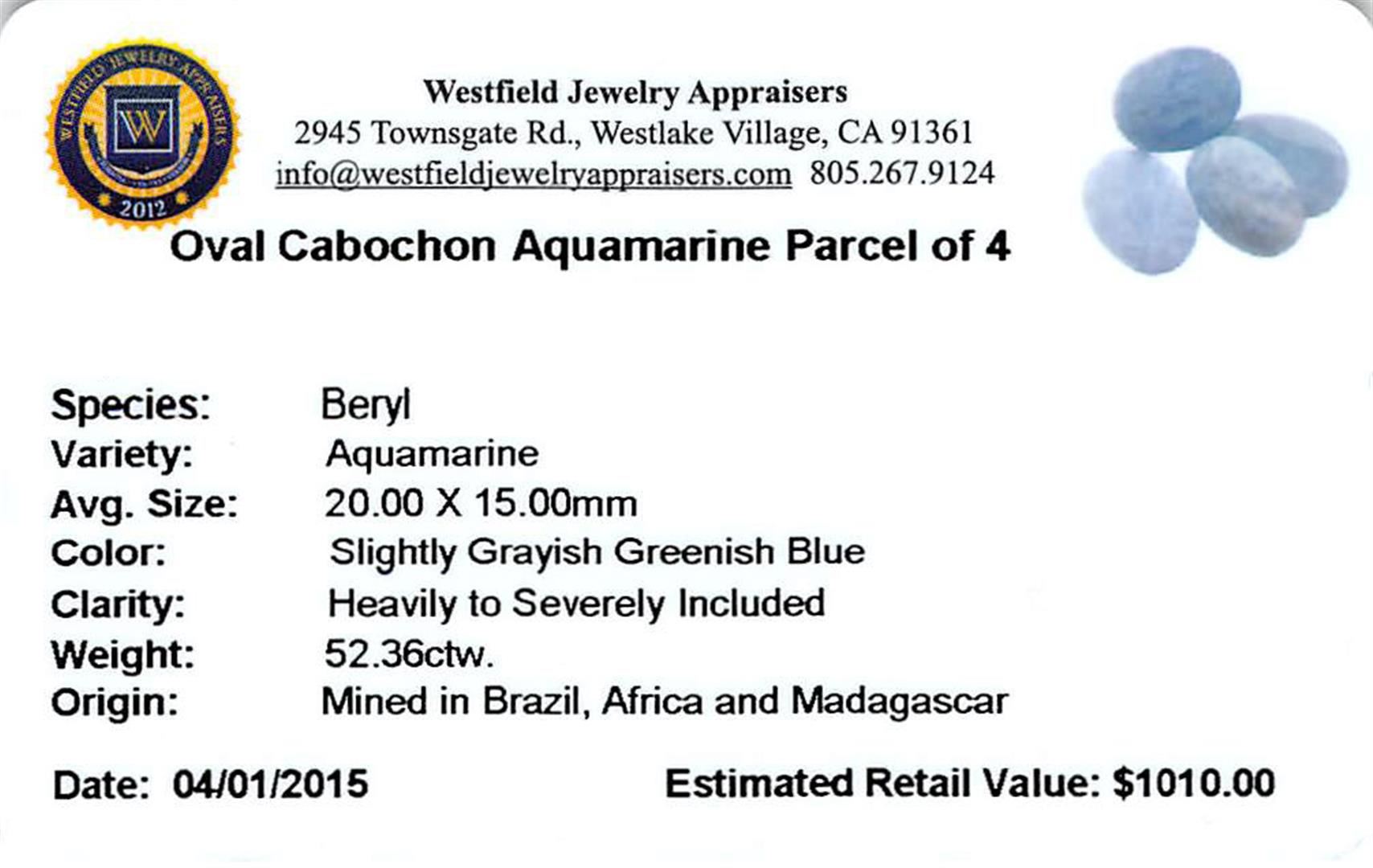 One 52.36ctw Oval Cabochon Aquamarine Parcel.