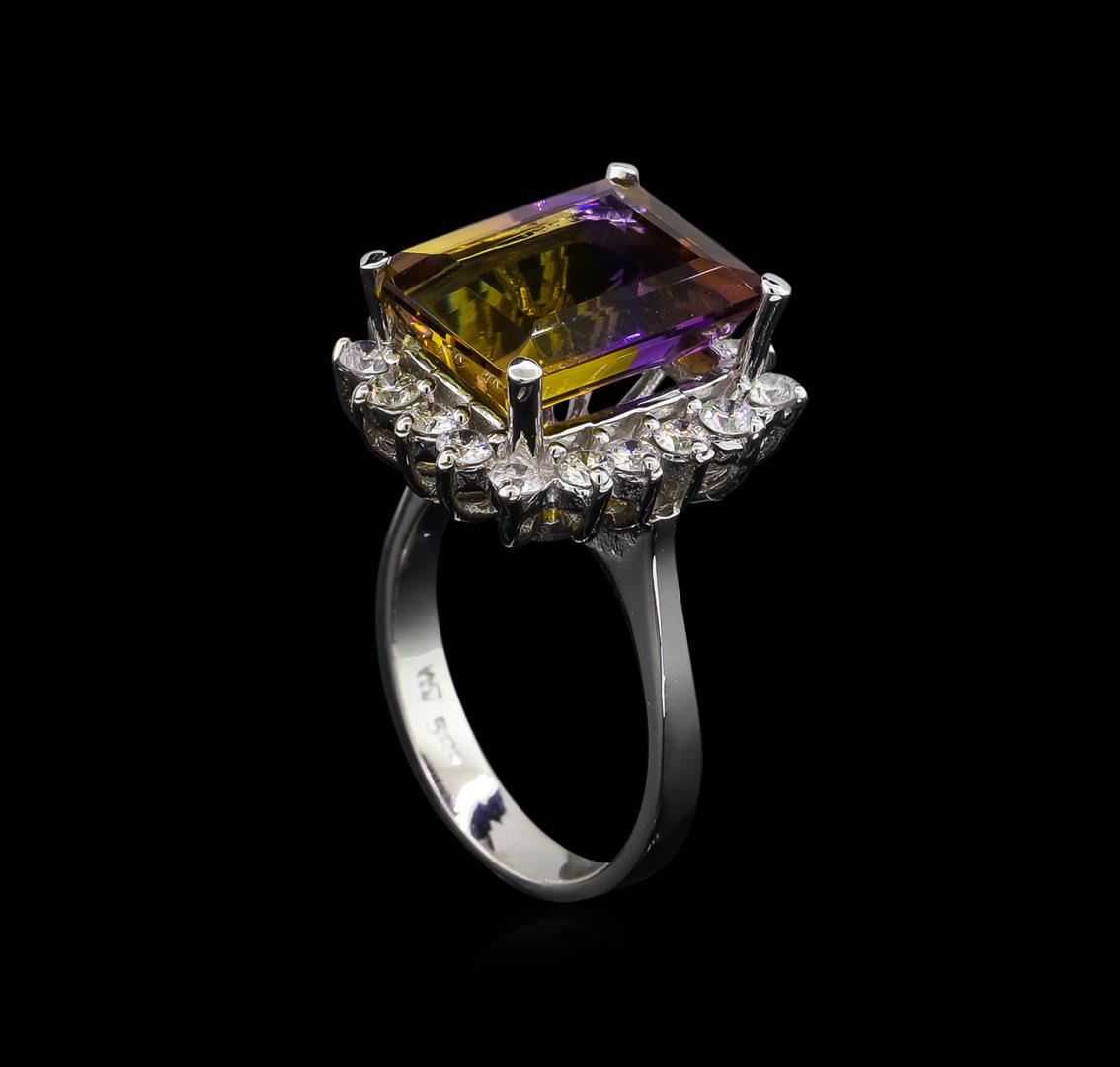 One ring featuring: 14KT white gold weighing 5.61 grams containing one ametrine with a total weight of 6.00ct and side diamonds with a total weight of 0.76ct.