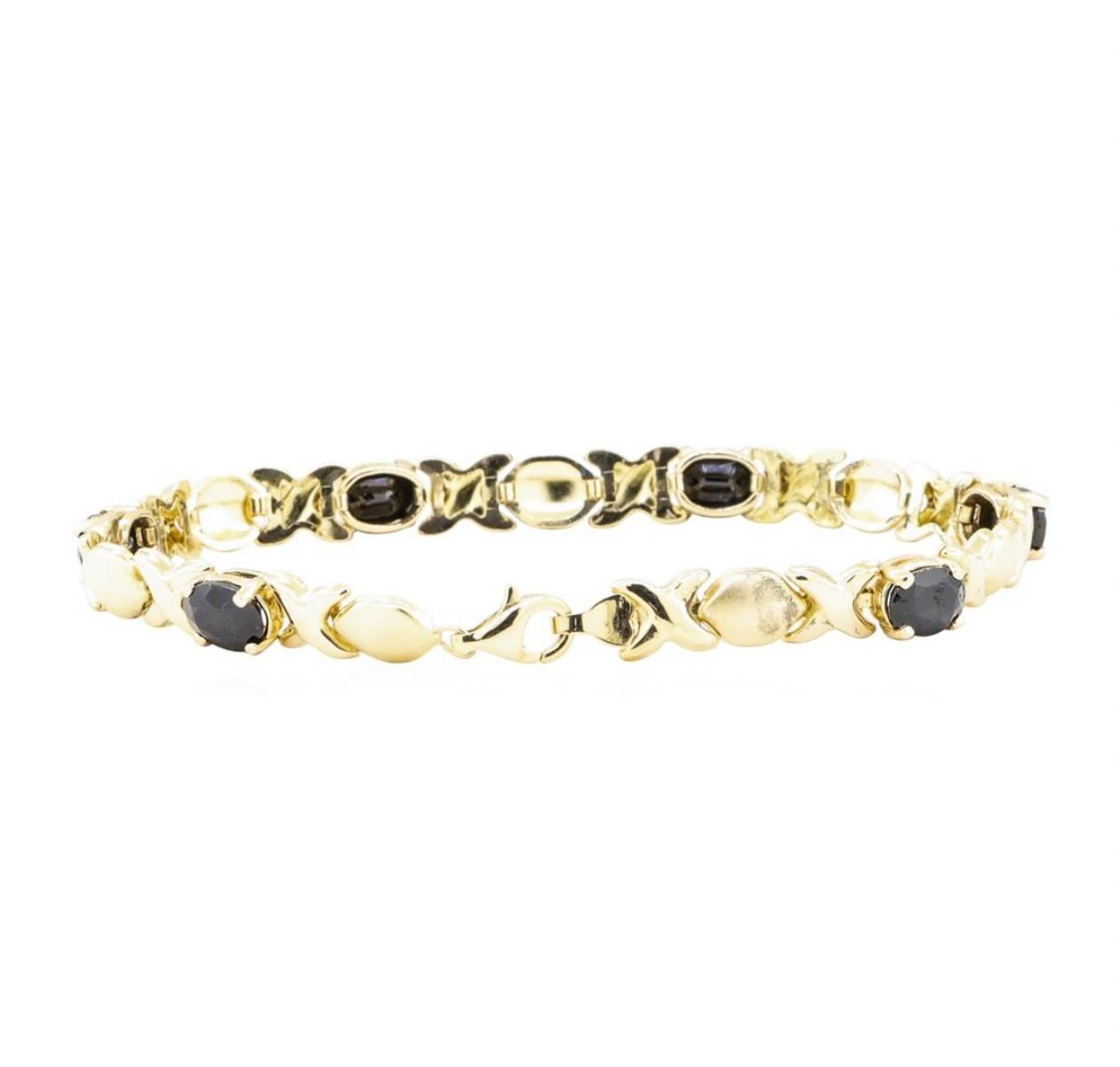 One "X's and O's" bracelet measuring approximately seven inches in length featuring: 10KT yellow gold weighign 6.8 grams containing six sapphires weighing 6.00ctw.