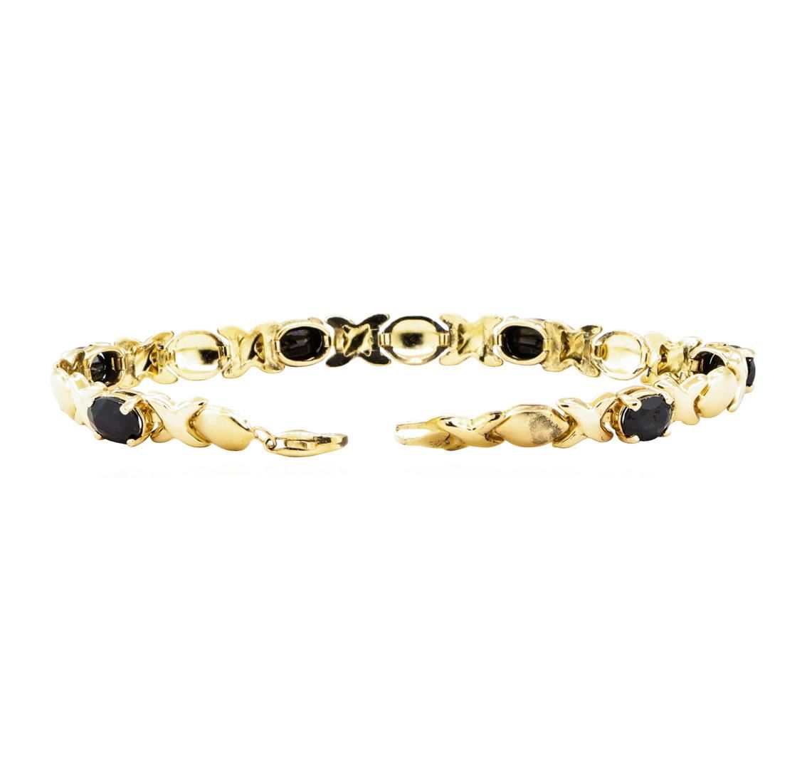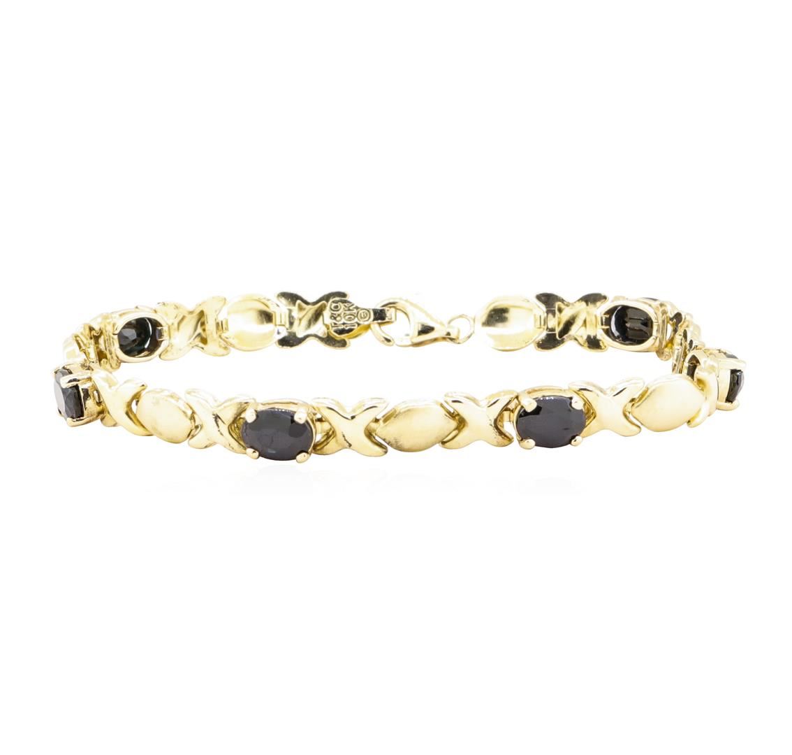 One "X's and O's" bracelet measuring approximately seven inches in length featuring: 10KT yellow gold weighign 6.8 grams containing six sapphires weighing 6.00ctw.