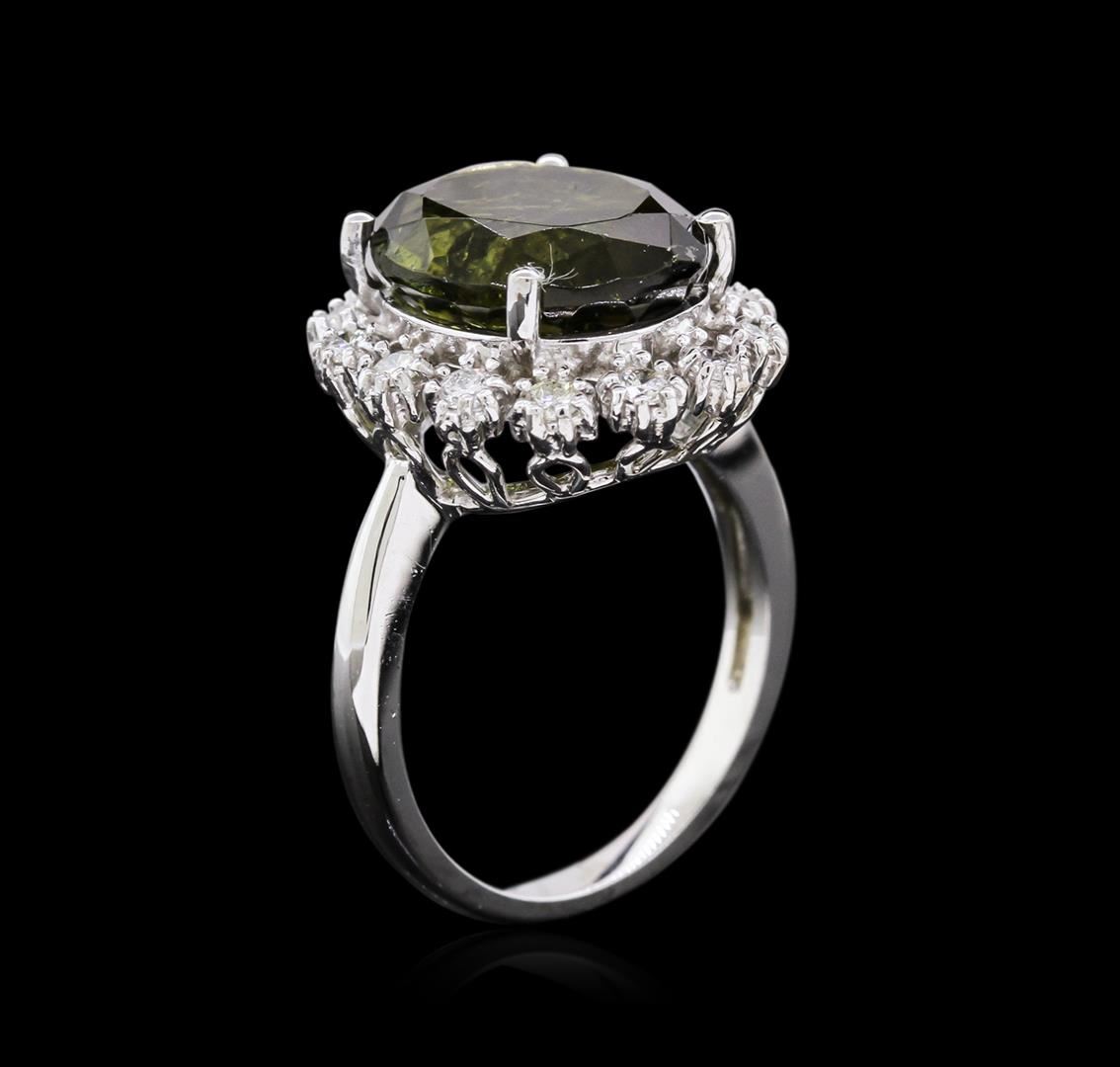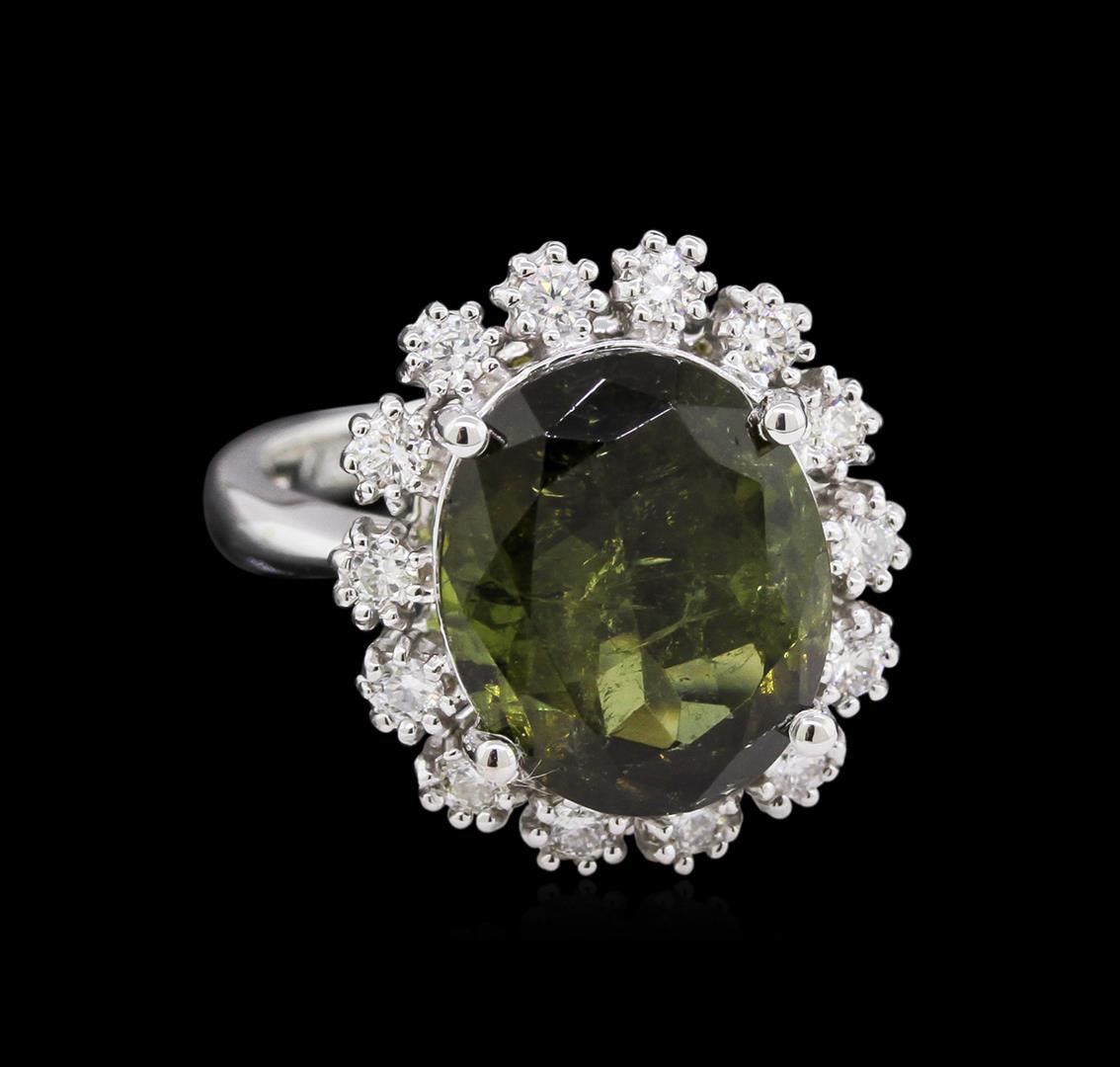 One ring featuring: 14KT white gold weighing 4.77 grams containing one green tourmaline with a total weight of 6.15ct and diamonds with a total weight of 0.40ct.