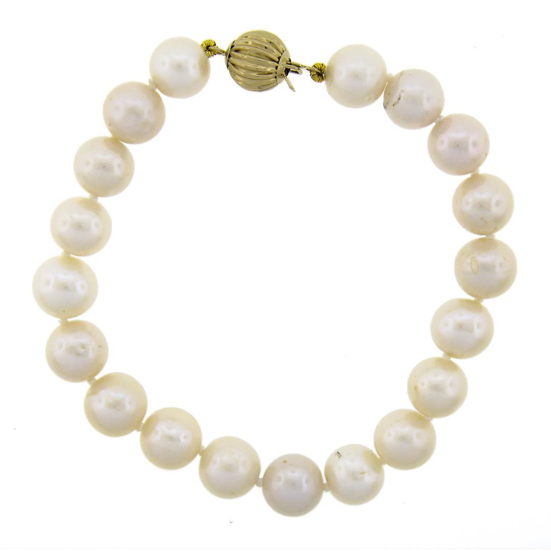 6.5" 14k Gold Grooved Ball Hook Push Clasp 8-8.5mm Cultured Pearl Bracelet