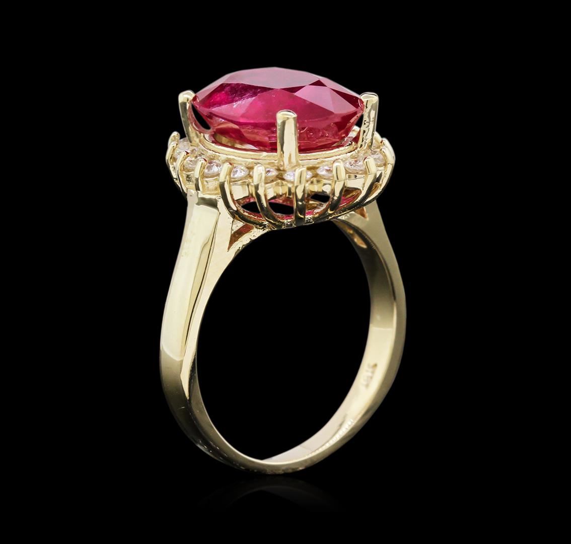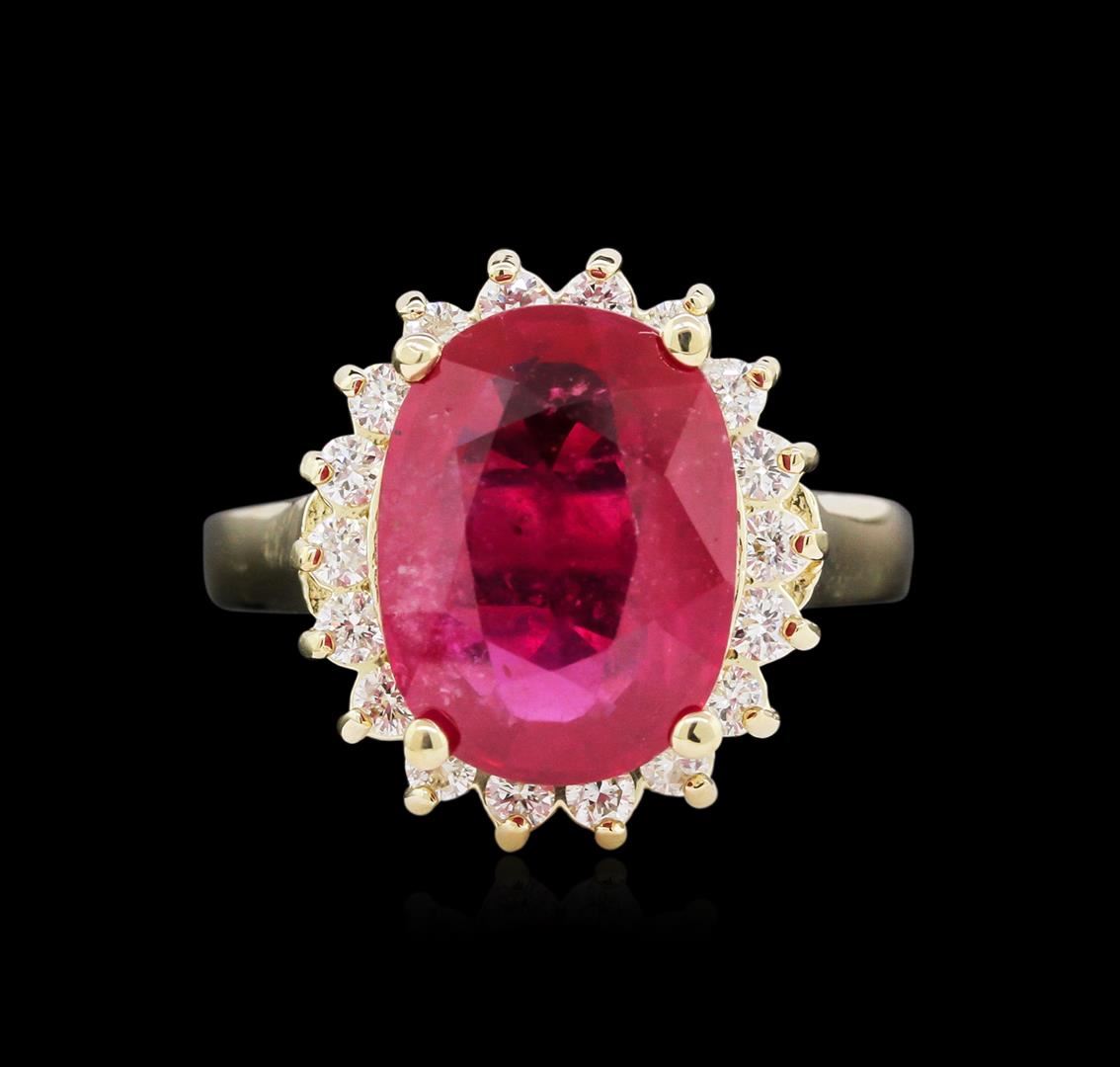 One ring featuring: 14KT yellow gold weighing 5.51 grams containing one ruby with a total weight of 6.50ct and diamonds with a total weight of 0.50ct.