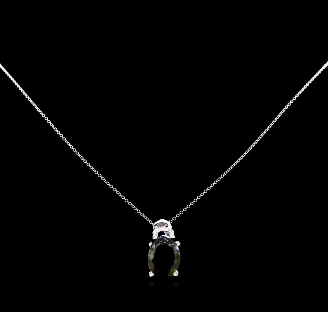 One pendant with chain featuring: 14KT white gold weighing 2.31 grams containing one tourmaline weighing 6.58ct and diamonds weighing 0.07ctw.