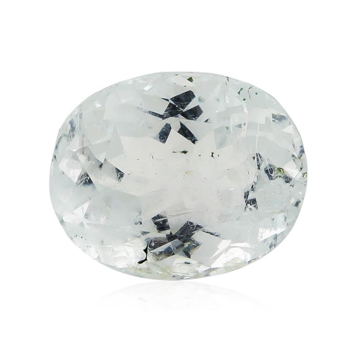 One natural oval cut aquamarine with an exact weight of 6.75ct., clarity is moderately included, slightly grayish greenish blue. Gemological Appraisals Services estimates the retail value at $2025 GAS Appraised.