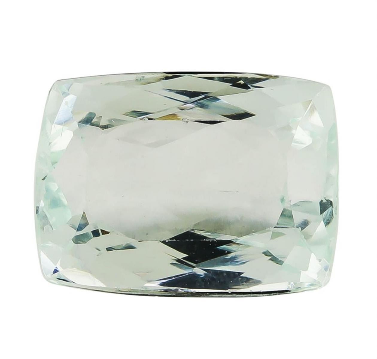 One natural rectangle cushion cut aquamarine with an exact weight of 6.84ct., clarity is eye clean, slightly grayish greenish blue. Gemological Appraisals Services estimates the retail value at $2599.2 GAS Appraised.