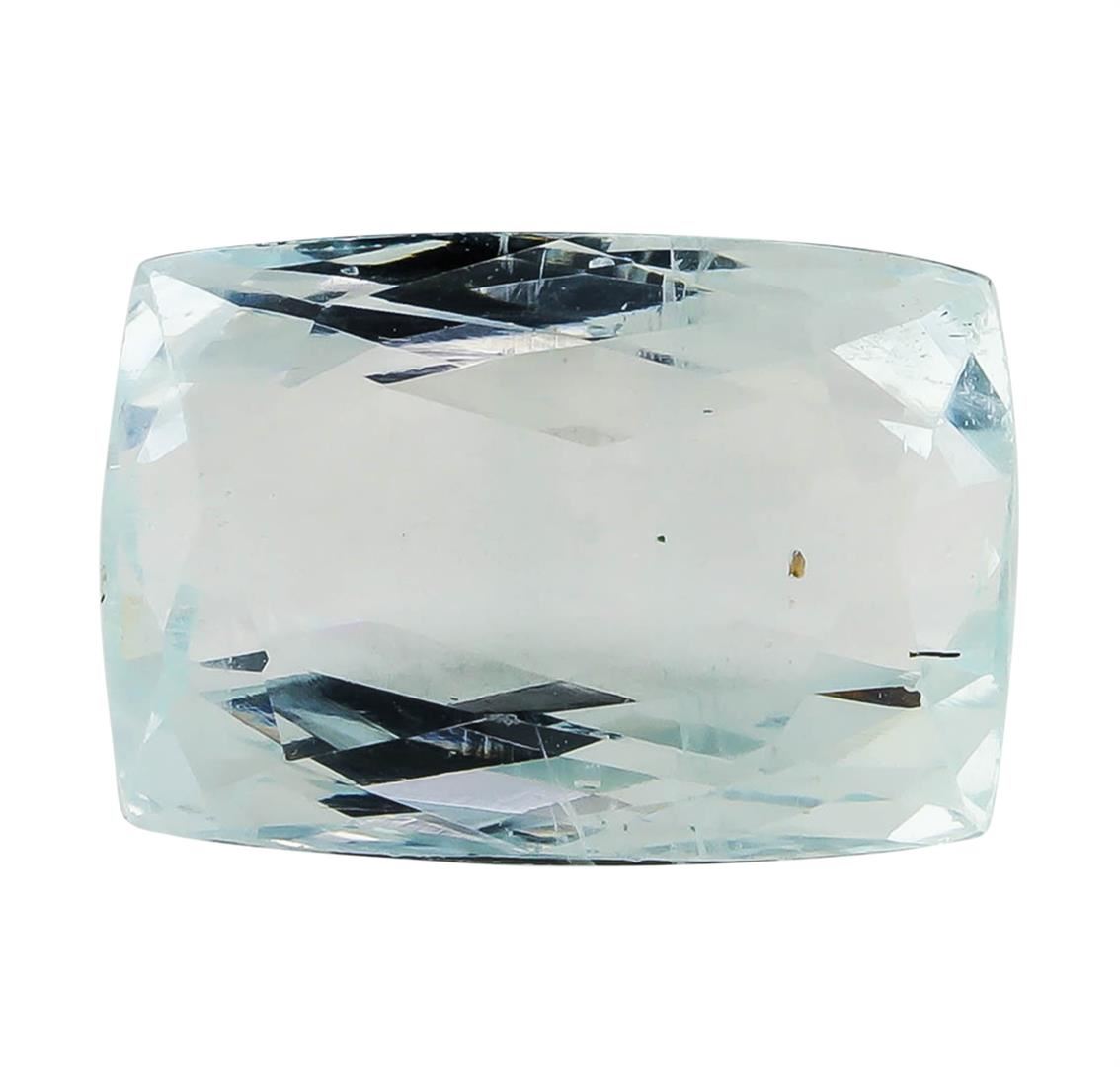 One natural rectangle cushion cut aquamarine with an exact weight of 6.90ct., clarity is slightly included, slightly grayish greenish blue. Gemological Appraisals Services estimates the retail value at $2415 GAS Appraised.