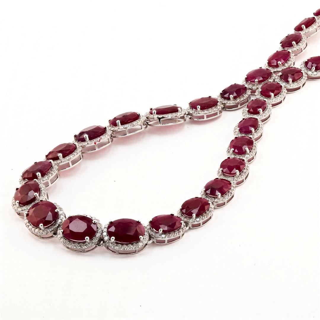 65.37 ctw Burmese Ruby and 9.32 ctw Diamond 14K White Gold Necklace (GIA CERTIFI