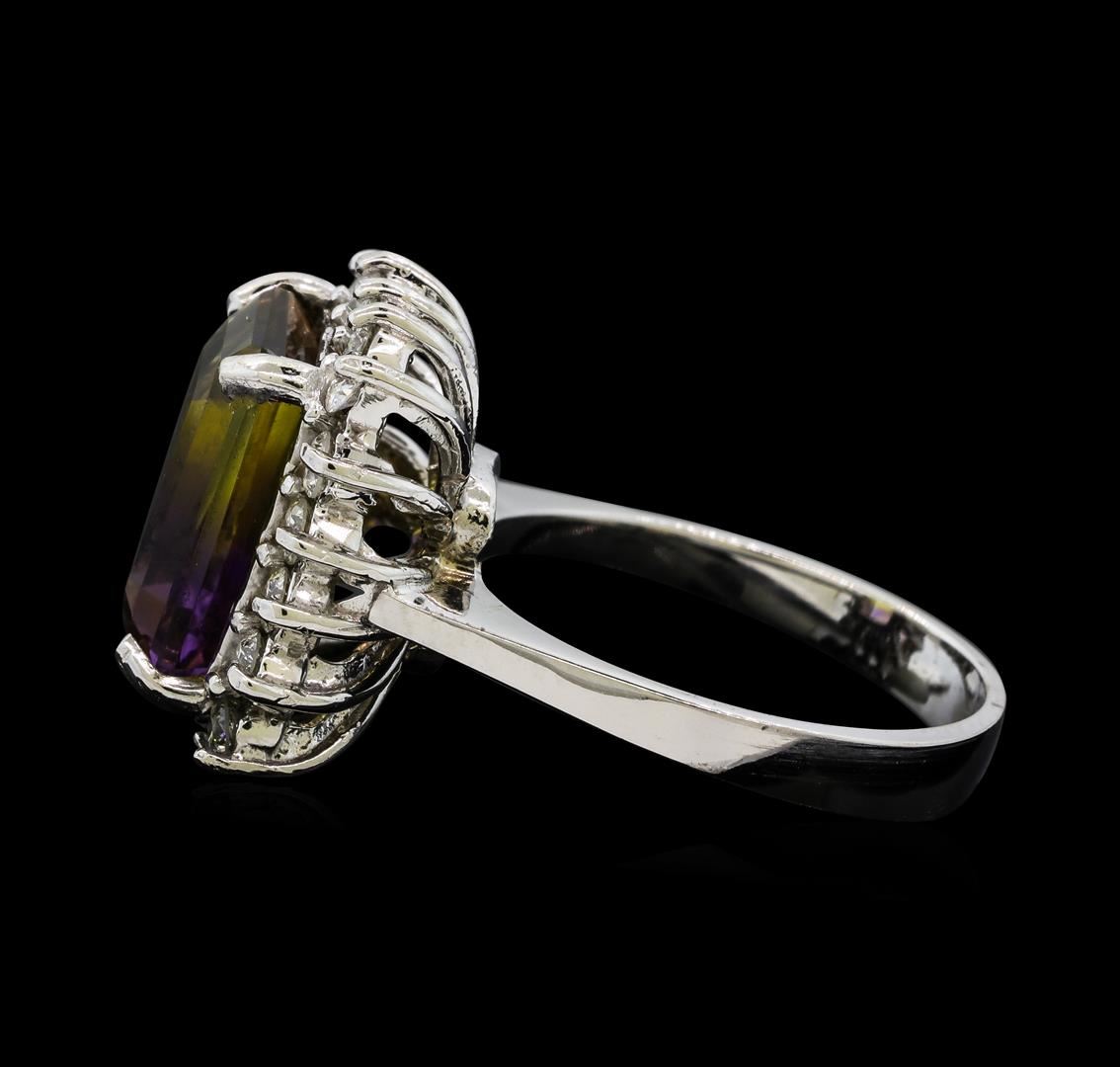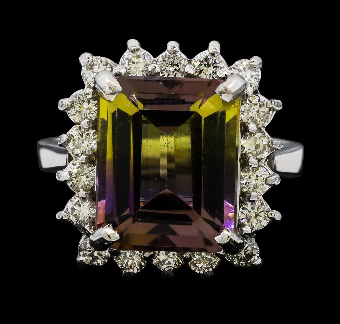 One Morganite and Diamond Ring including: 14KT White Gold weighing a total of 6.00 grams, Morganite weighing a total of 7.70ct, and 58 Diamonds weighing a total of 0.49ctw.