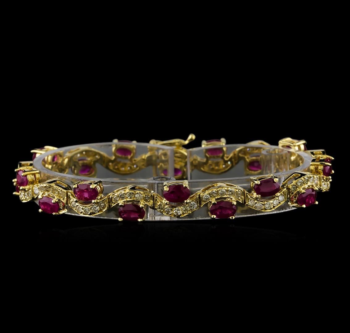 7.74 ctw Ruby and Diamond Bracelet - 14KT Yellow Gold