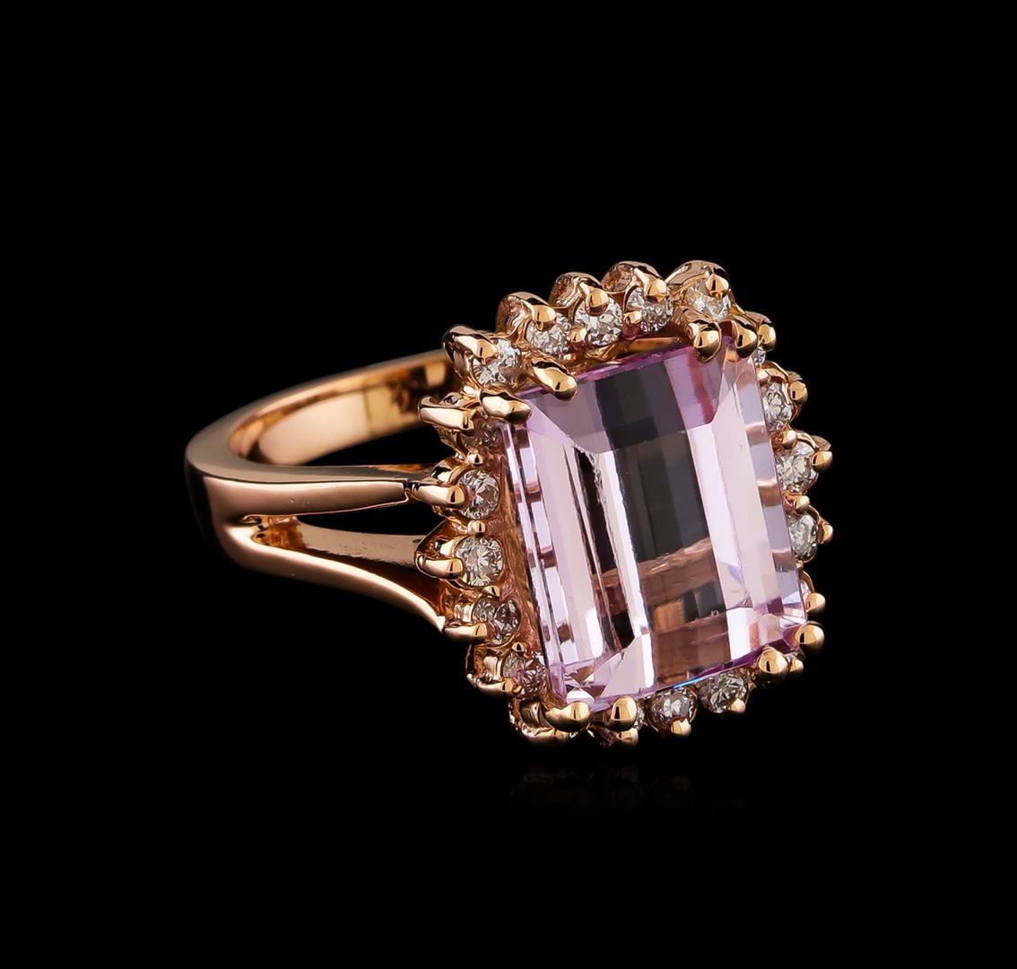 One ring featuring: 14KT Rose Gold weighing 6.76 grams containing one Kunzite center stone with a total weight of 7.82ct and diamonds with a total weight of 0.44ct.