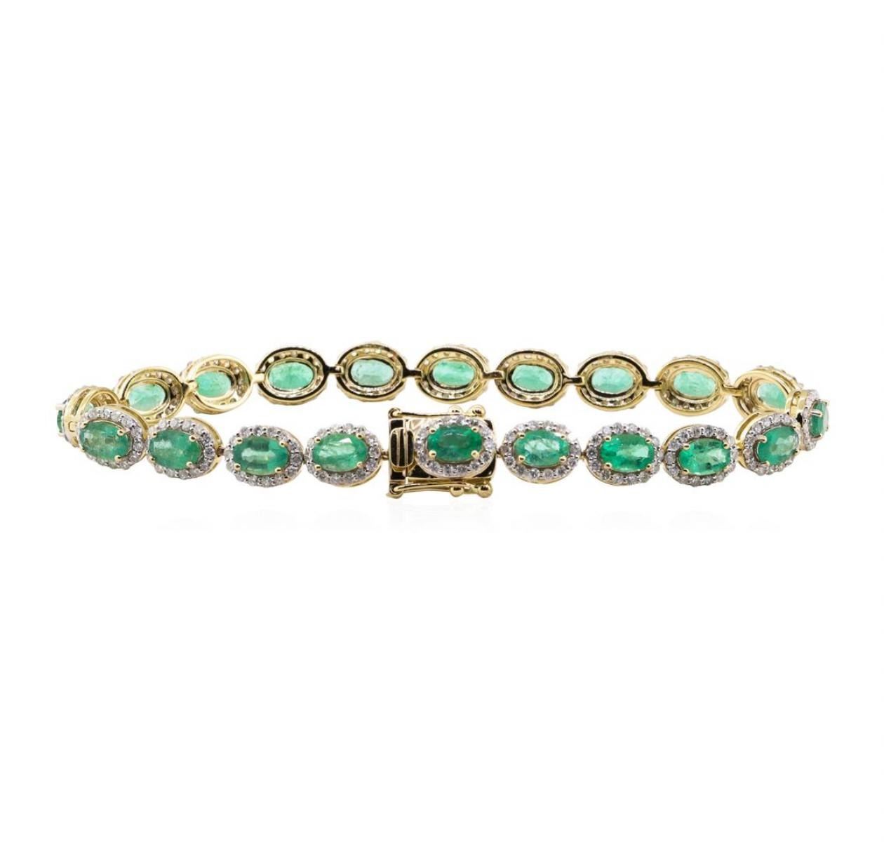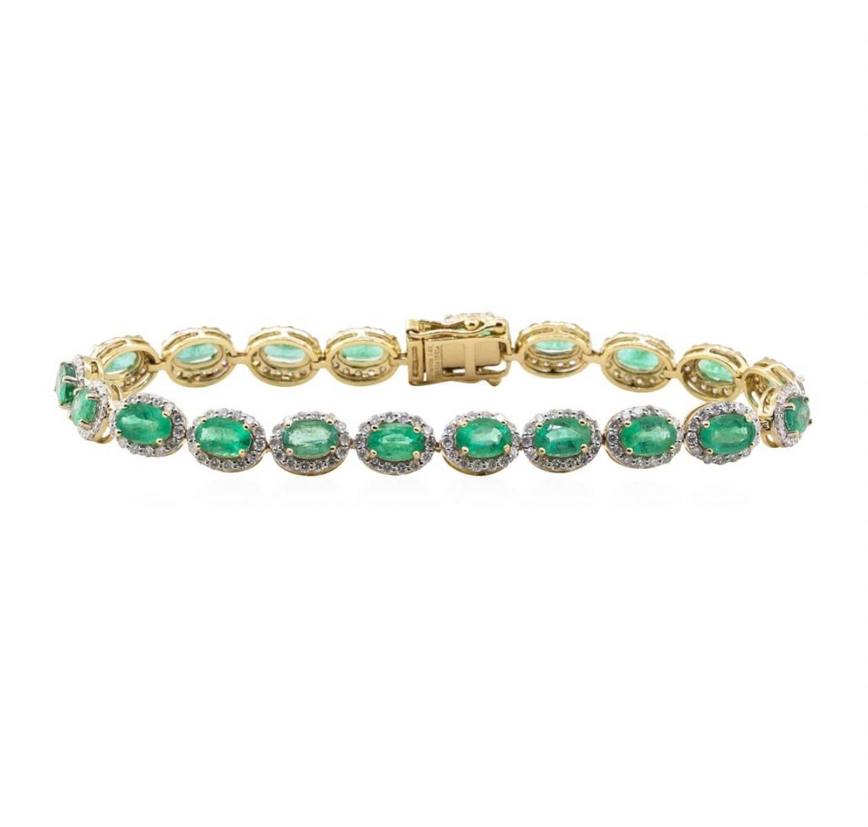 One 8.51ctw Emerald and Diamond Bracelet - 14KT Yellow Gold. AIG certified. See Appraisal for more details. AIG Appraised.