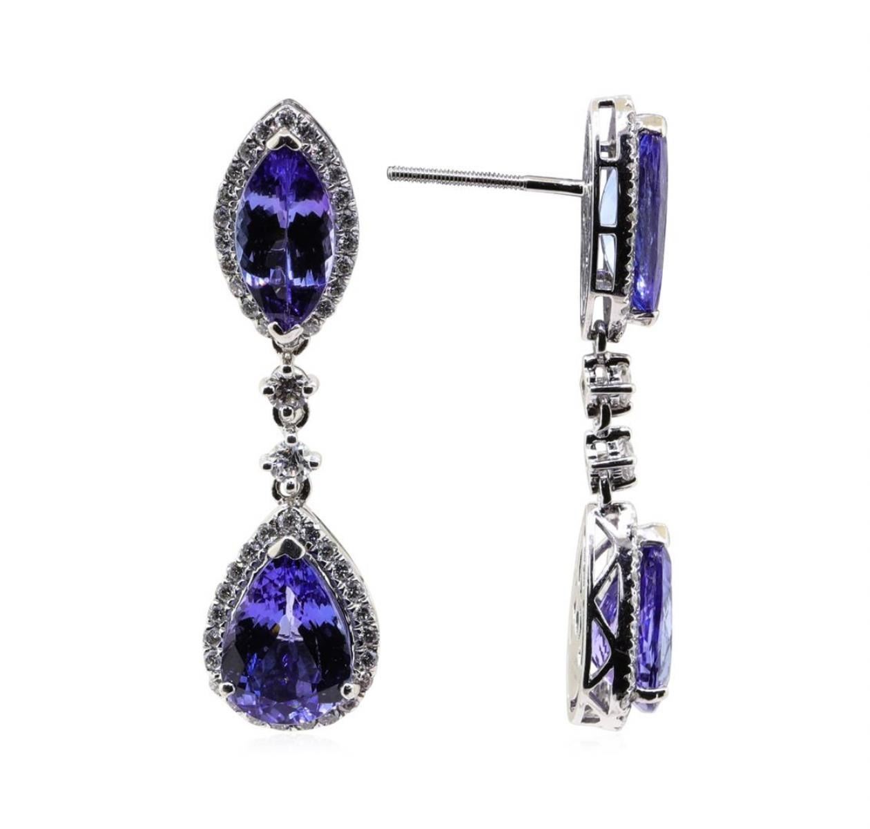 One 8.51ctw Tanzanite and Diamond Earrings - Platinum. AIG certified. See Appraisal for more details. AIG Appraised.