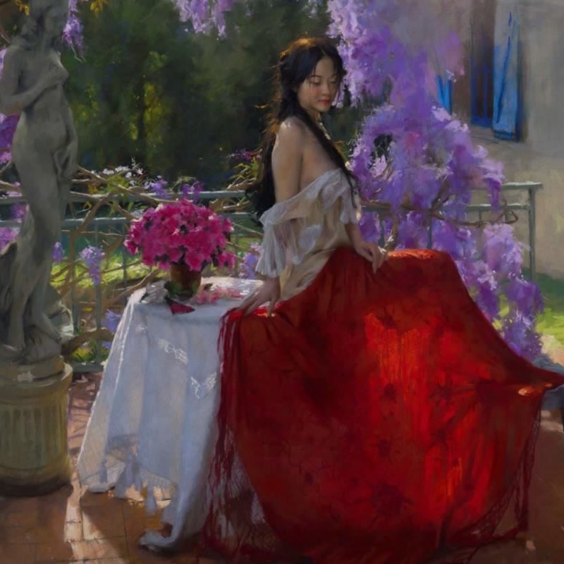 "A Magical Moment" is a limited edition giclee on canvas by Vicente Romero. The piece is hand signed, numbered, and come with a certificate of authenticity. Measures approximately 21" x 28".