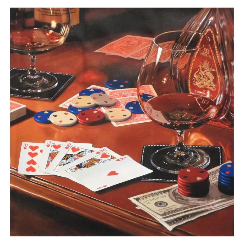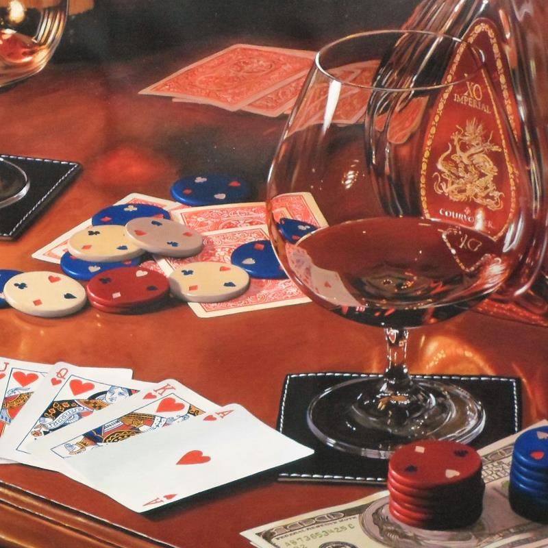 "A Royal Night" is a numbered limited edition giclee on canvas by Nobu Hairara. It comes bearing the artist's authorized signature and with a Certificate of Authenticity. Measures approximately 26"x26" (image).