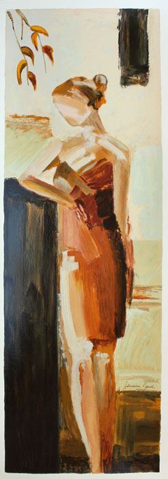 Artist: Adriana Naveh Title: IN THOUGHT Medium: Serigraph on Fine Art Paper Signature: Hand-signed by the Artist Limited Edition: 375 Image Size: Approximately 39 inches x 13 inches Framed: Unframed Details: This work comes with a Certificate of Authenticity Adriana Naveh's women images are symbolic of the love and passion she feels toward her environment as she inspires the onlooker to visualize the Beauty of Womanhood. With the use of an interesting medium, plaster speckle and large open spaces Naveh gives new meaning to simplicity in composition. A background of household artifacts highlights women engrossed in thought, caught in a simple soft pose. The intimate subjects are inspired by everyday life.