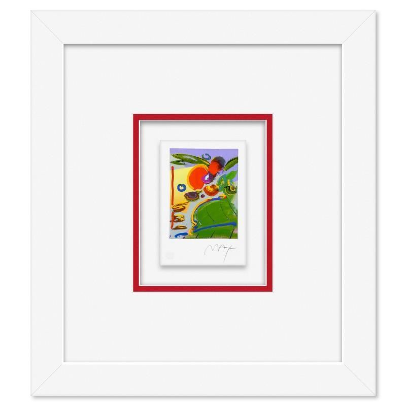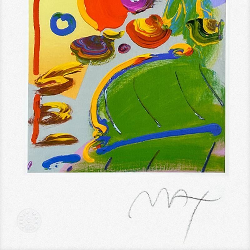 "Abstract Vase of Flowers" is a limited edition lithograph on paper by Peter Max, numbered and hand signed by the artist. This piece comes framed. Includes Certificate of Authenticity from Peter Max Studios. Measures approx. 19.5" x 16.5" (frame), 9.5" x 6.5" (image).