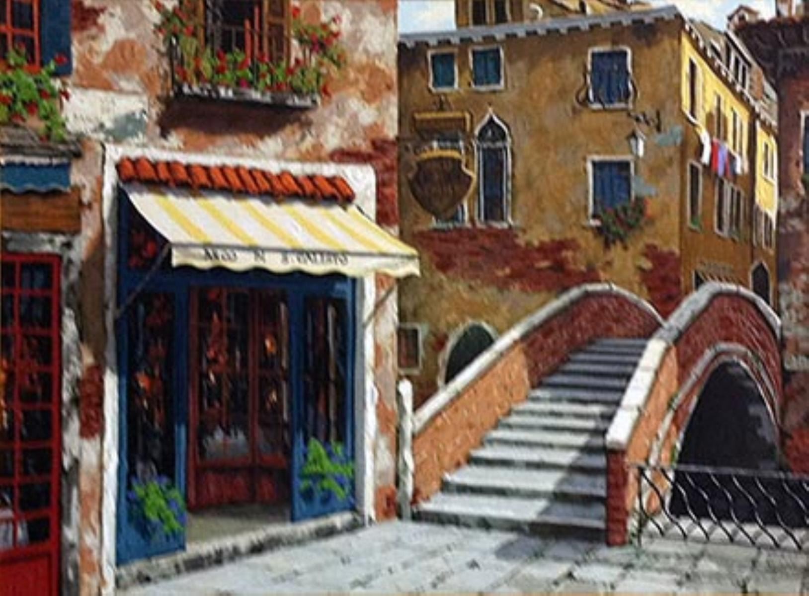 Across the Bridge by Victor Shvaiko. Unframed and stretched on Limited Edition enhanced canvas. Comes with certificate of Authenticity! Dimension (inches): 30x40