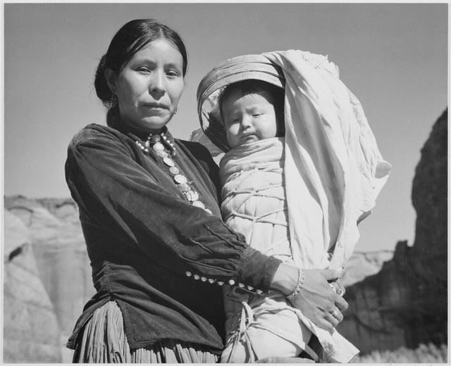 Artist: Ansel Adams - Title: Dinee Woman and Infant, Canyon de Chelle, Arizona - Medium: Fine Art Reproduction Giclee on Canvas - Image Size: Approximately 26 inches x 32 inches - Unframed on Unstretched Canvas - Biography: As a conservationist, writer, teacher, and photographer, Ansel Adams has been profoundly influential on future generations of artists, photographers, and environmentalists. There can be little doubt that he produced some of the most iconic images of the great American wilderness. Following in a long tradition of American landscape photographers, including Carleton Watkins, Eadweard Muybridge, Timothy O'Sullivan, and William Henry Jackson, Adams brought landscape photography into the realm of modernism by fusing technical precision with a profound and abiding love of the natural world. His work has inspired a range of artists and photographers working in the landscape tradition, from Eliot Porter and Robert Adams, to Edward Burtynsky and Richard Misrach. The subject of countless documentaries, books, essays, and exhibitions, Adams's images appear on living room and museum walls, proving that his photographs of the great American landscape continue to resonate.