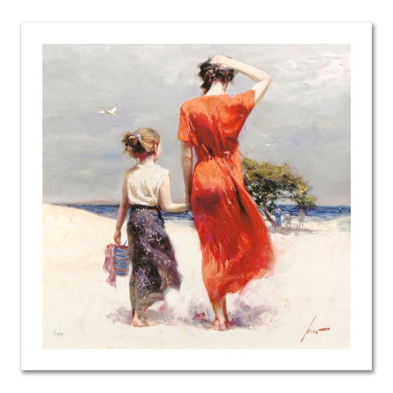 "Afternoon Stroll" is a limited edition giclee on paper by Pino (1939-2010). The piece comes numbered and is hand signed by the artist. Includes Certificate of Authenticity. Measures approxiamtely 16 x 16" (image).