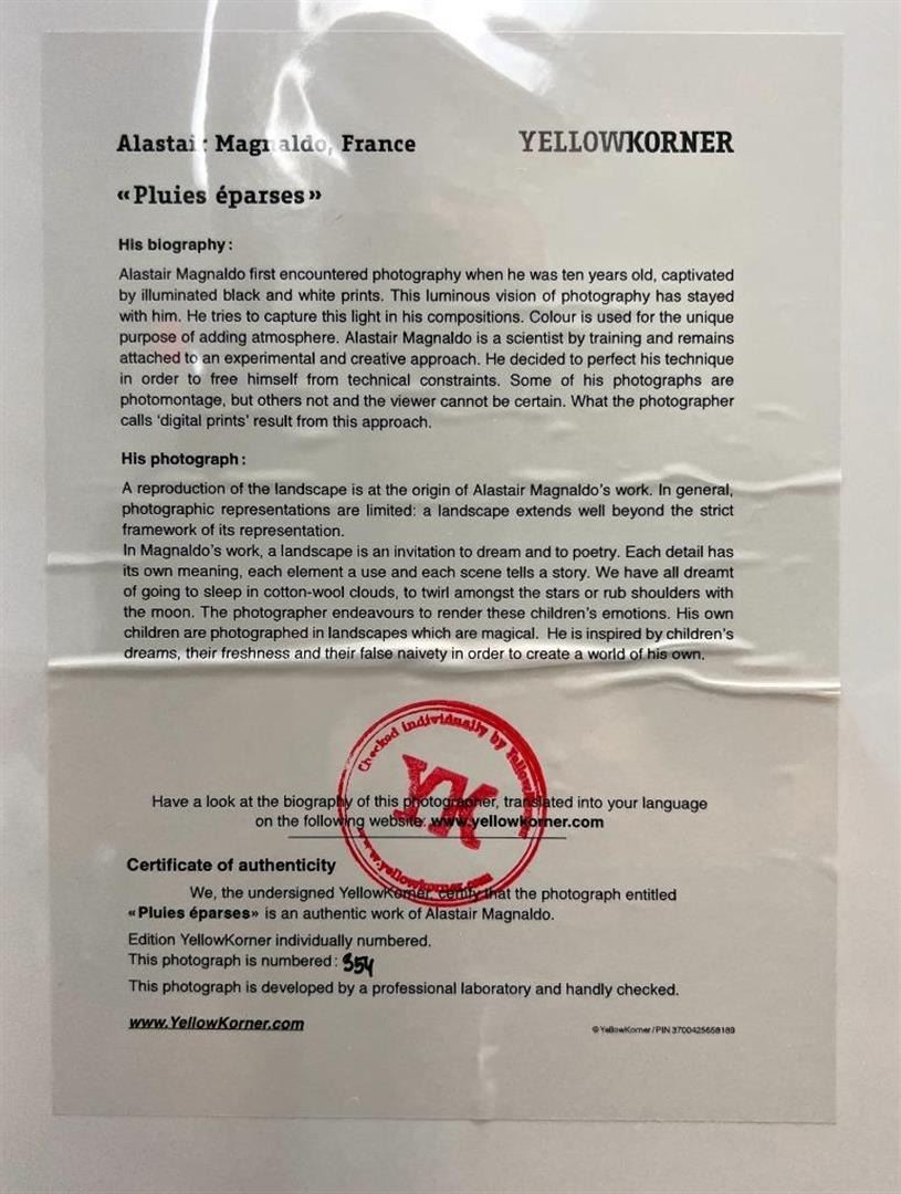 Alastai Magnaldo Scattered Rain Child YellowKorner Certified Photograph. Certificate of Authenticity from YellowKorner affixed to the back. Matted Dimensions 16"x20". Protected with Clear Mylar Sleeve.
