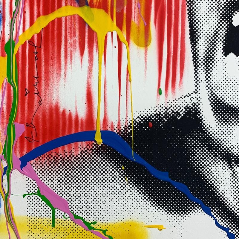 "Ali" is a mixed media original on deckle edge paper by Mr. Brainwash, hand signed by the artist. This piece bears the thumbprint of the artist and comes custom framed. Includes Certificate of Authenticity. Measures approx. 26.5" x 26.5" (frame), 22.5" x