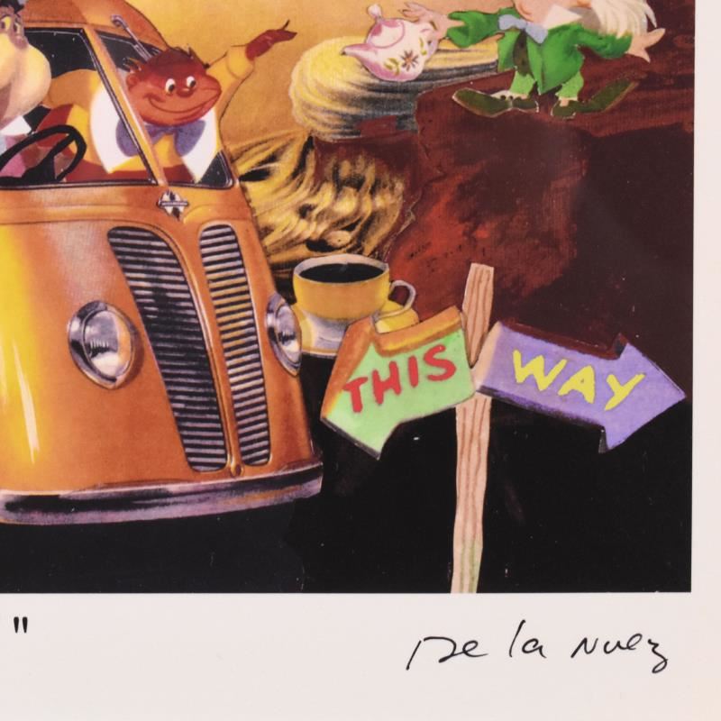 "Alice in Daliland" is a limited edition artist proof on paper by Nelson De La Nuez, numbered and hand signed by the artist. This piece comes custom framed. Includes Letter of Authenticity. Measures approx. 26" x 21" (frame), 15" x 10" (image).