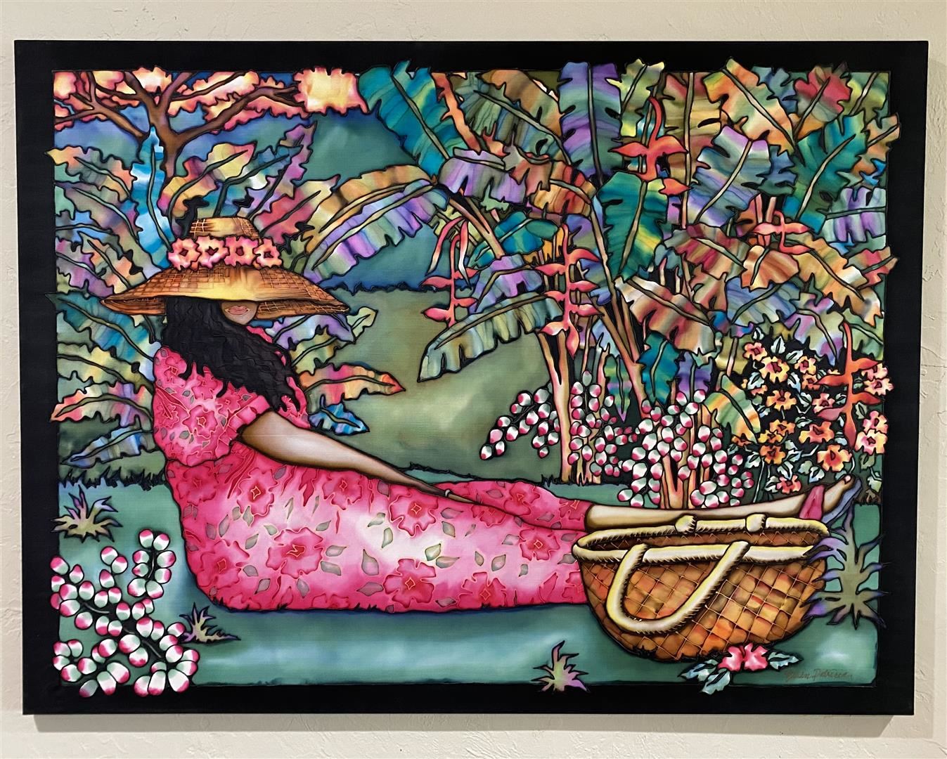 Welcome says Susan Patricia's "Aloha Moment", an original on silk, 40x30"