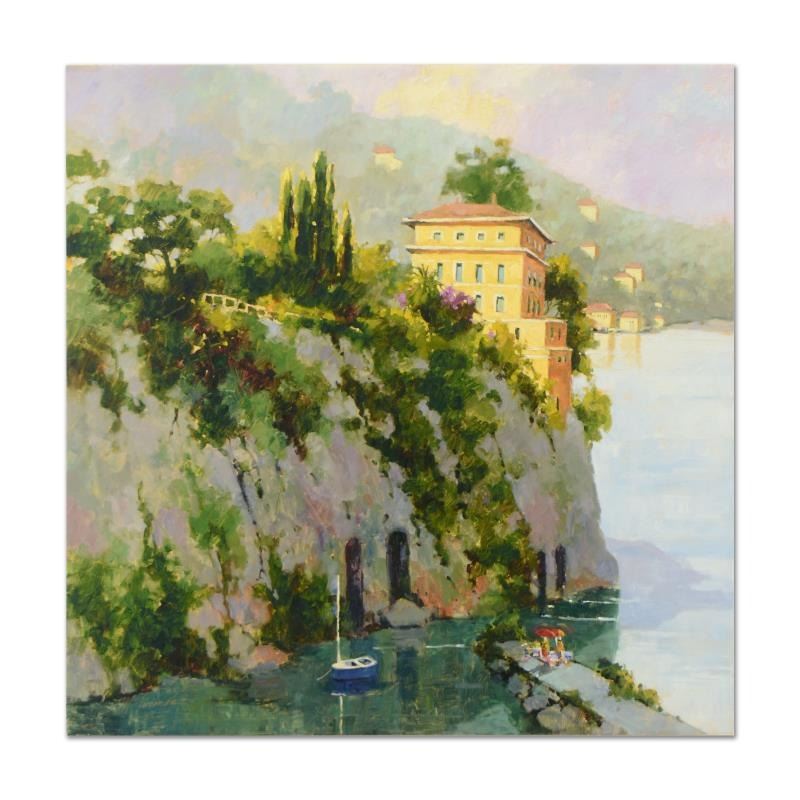 "Amalfi" is a limited edition giclee on stretched canvas by Marilyn Simandle, numbered and hand signed by the artist. Includes Letter of Authenticity. Measures approx. 36" x 36" (image).