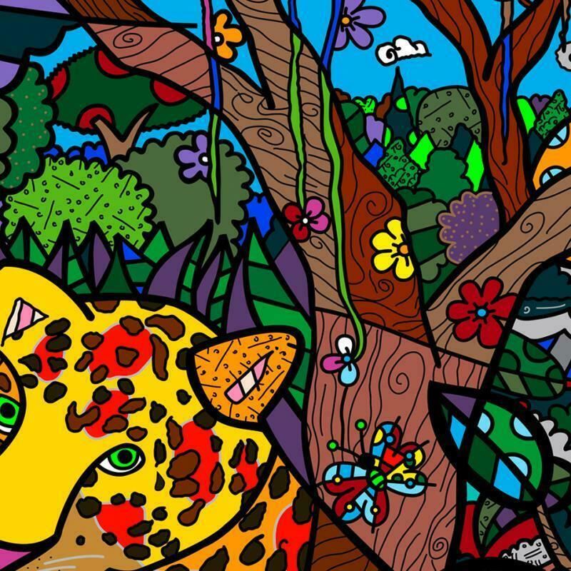"Amazon Mini" is an open edition giclee on canvas by Romero Britto. The piece comes hand signed by the artist and is authenticated en verso with the official Britto stamp. Measures approximately: 4" x 7".