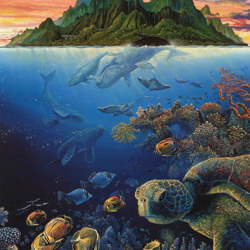 An Underwater Congress is a limited edition mixed media on paper by Robert Lyn Nelson, numbered and hand signed by the artist. Includes Letter of Authenticity. Measures approx. 24.5 x 39.5 (with border), 20.5 x 34 (image). ** Please note: the paper is slightly wavy and there may be smudges and/or creases in the white border area. **