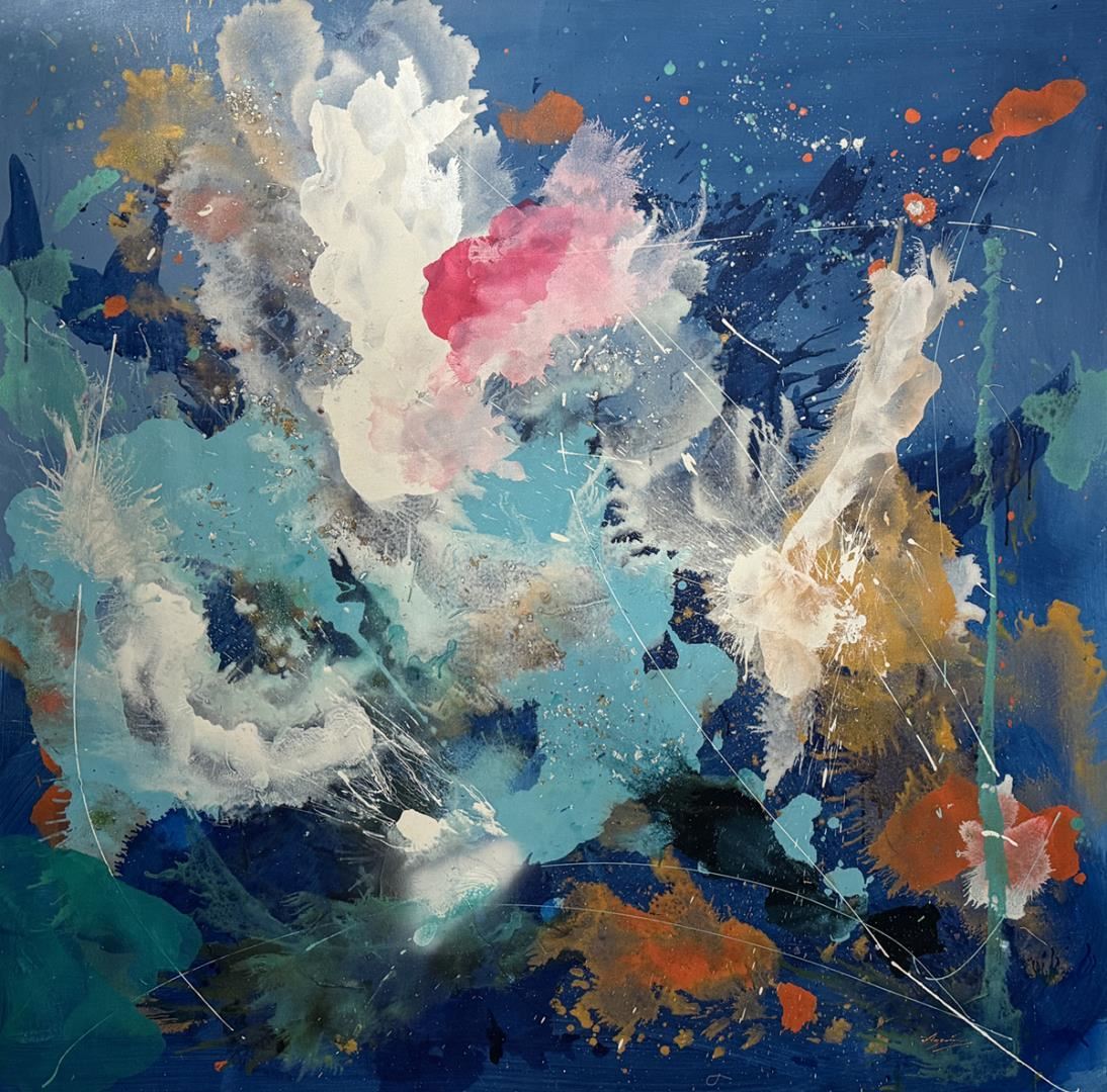 Marvelous original acrylic on canvas by Azarin, hand signed by artist. This artwork comes framed and ready to hang. Art size 55x55" framed size 57x57"